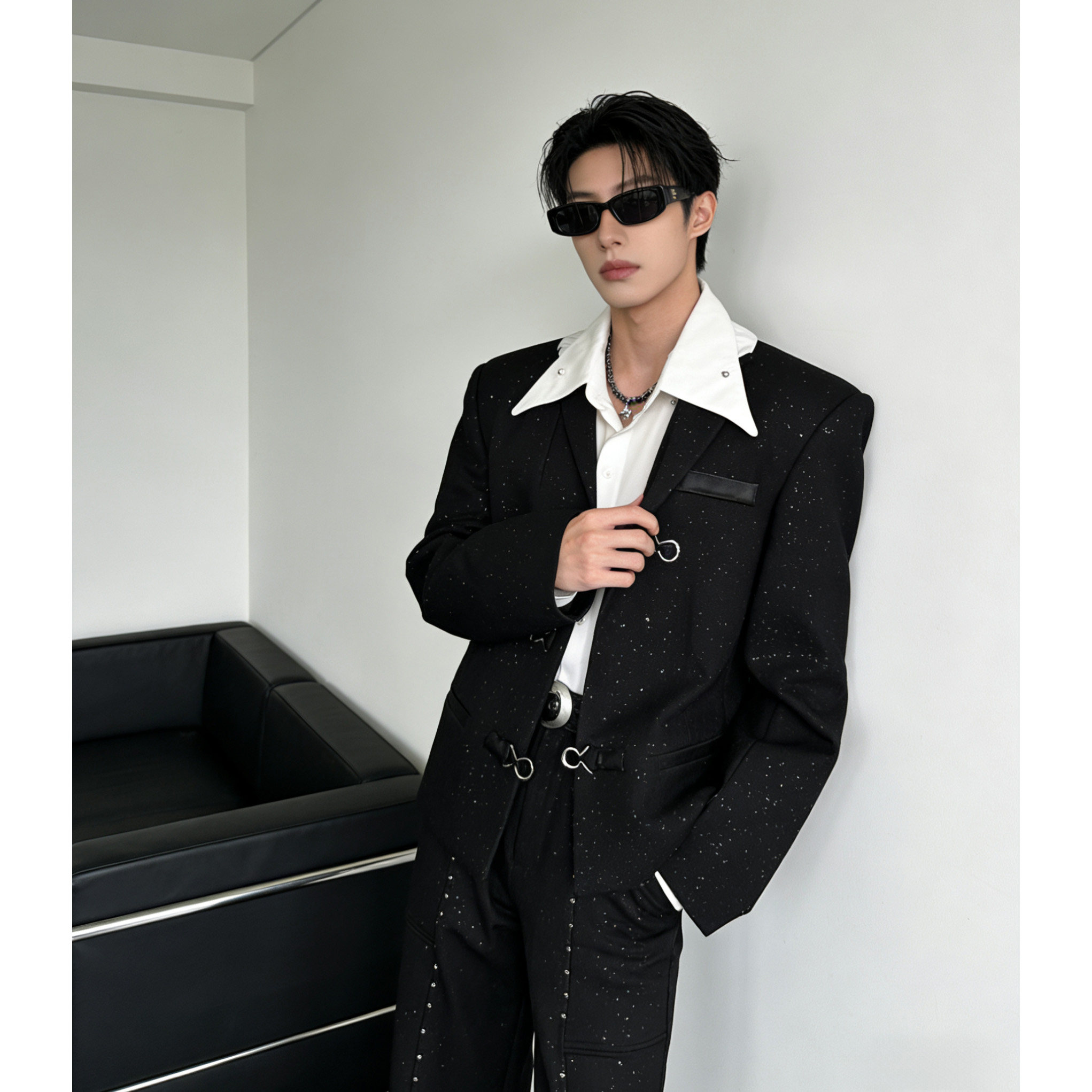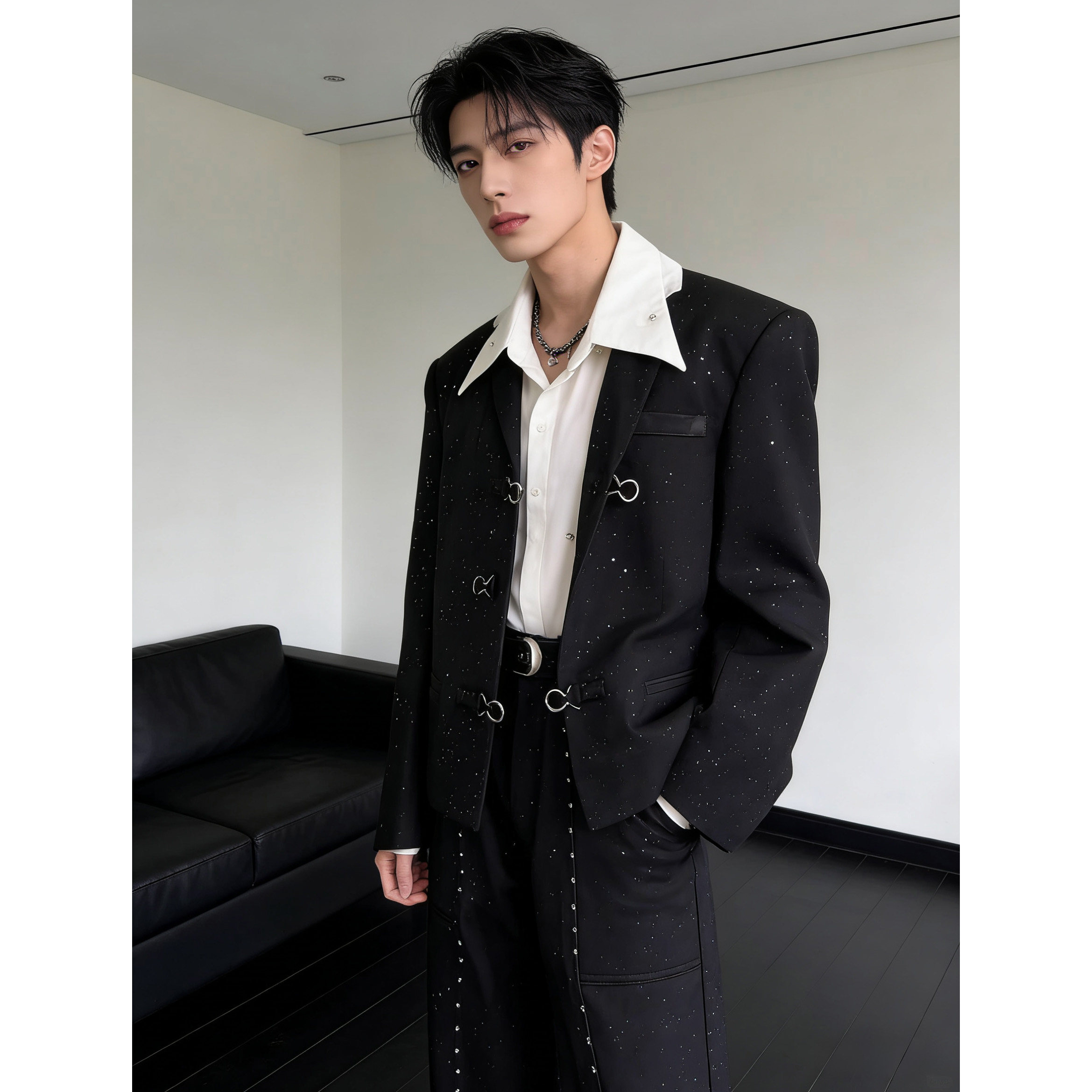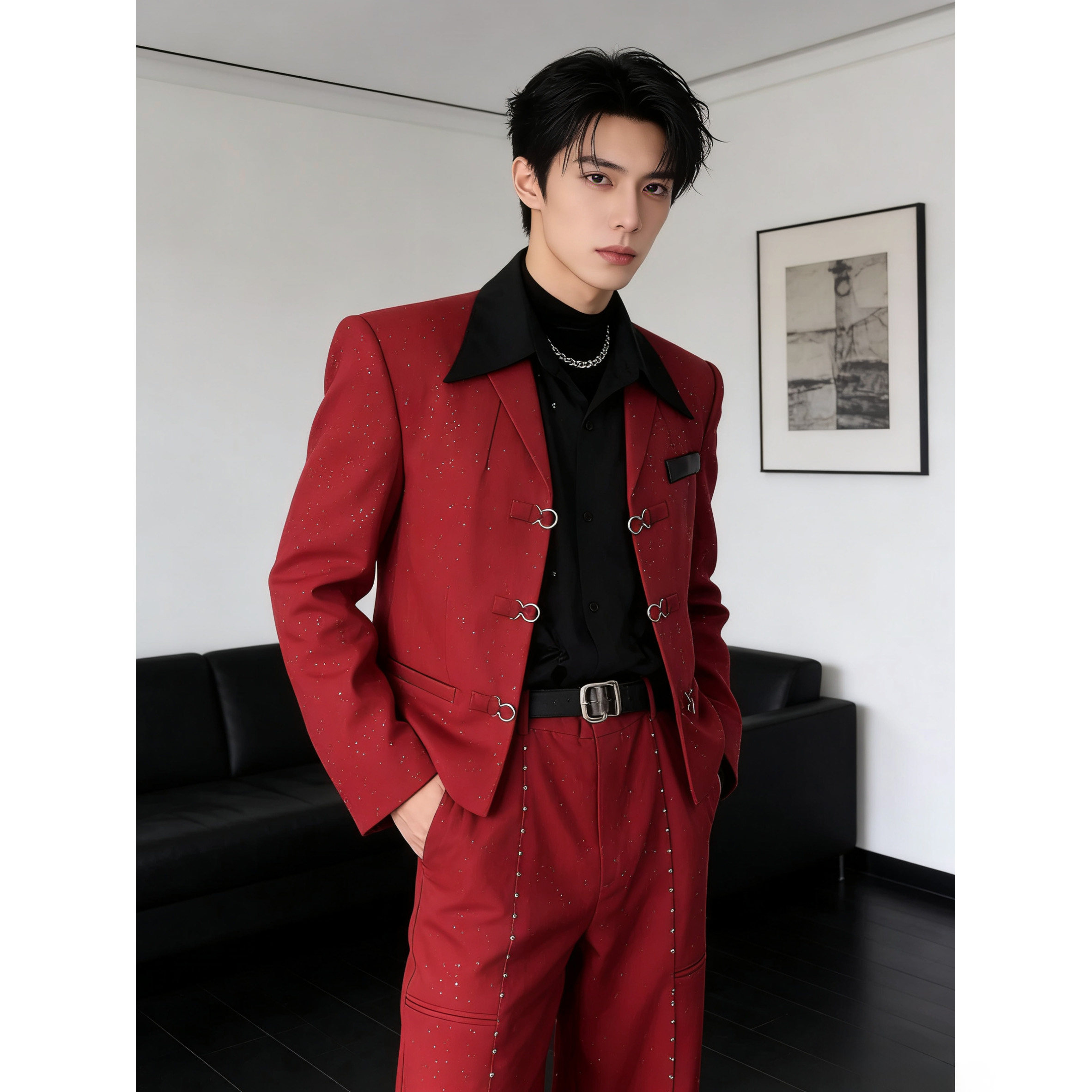 📚 He刺野/ 马年限定红色 轻奢满天星西服外套男模高级感痞帅西服