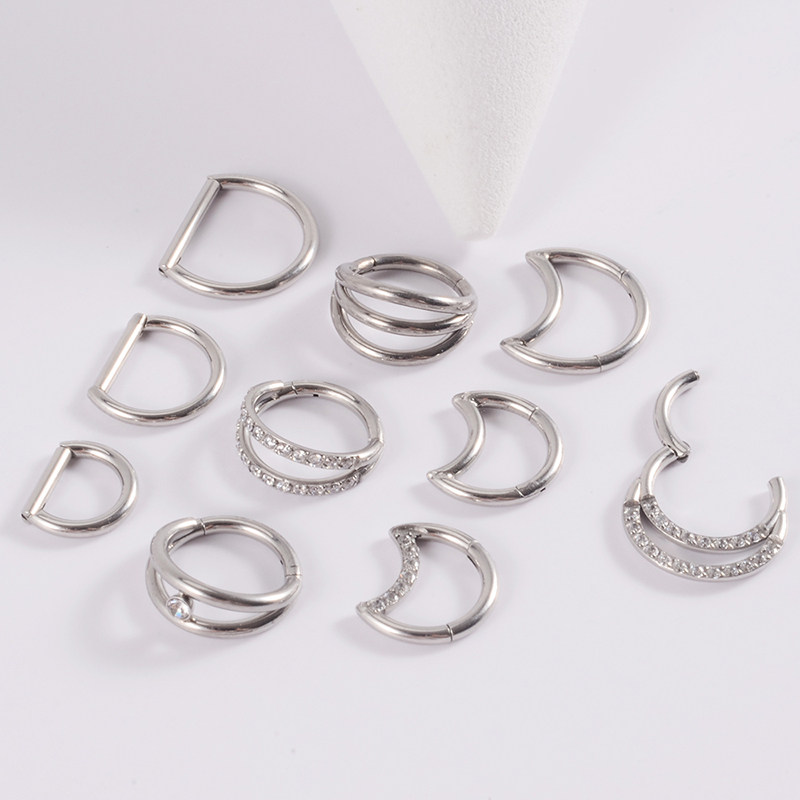 📚 旅悦 欧美卡扣式镶钻月亮爱心耳环耳骨环耳钉鼻环鼻钉鼻中隔鼻翼
