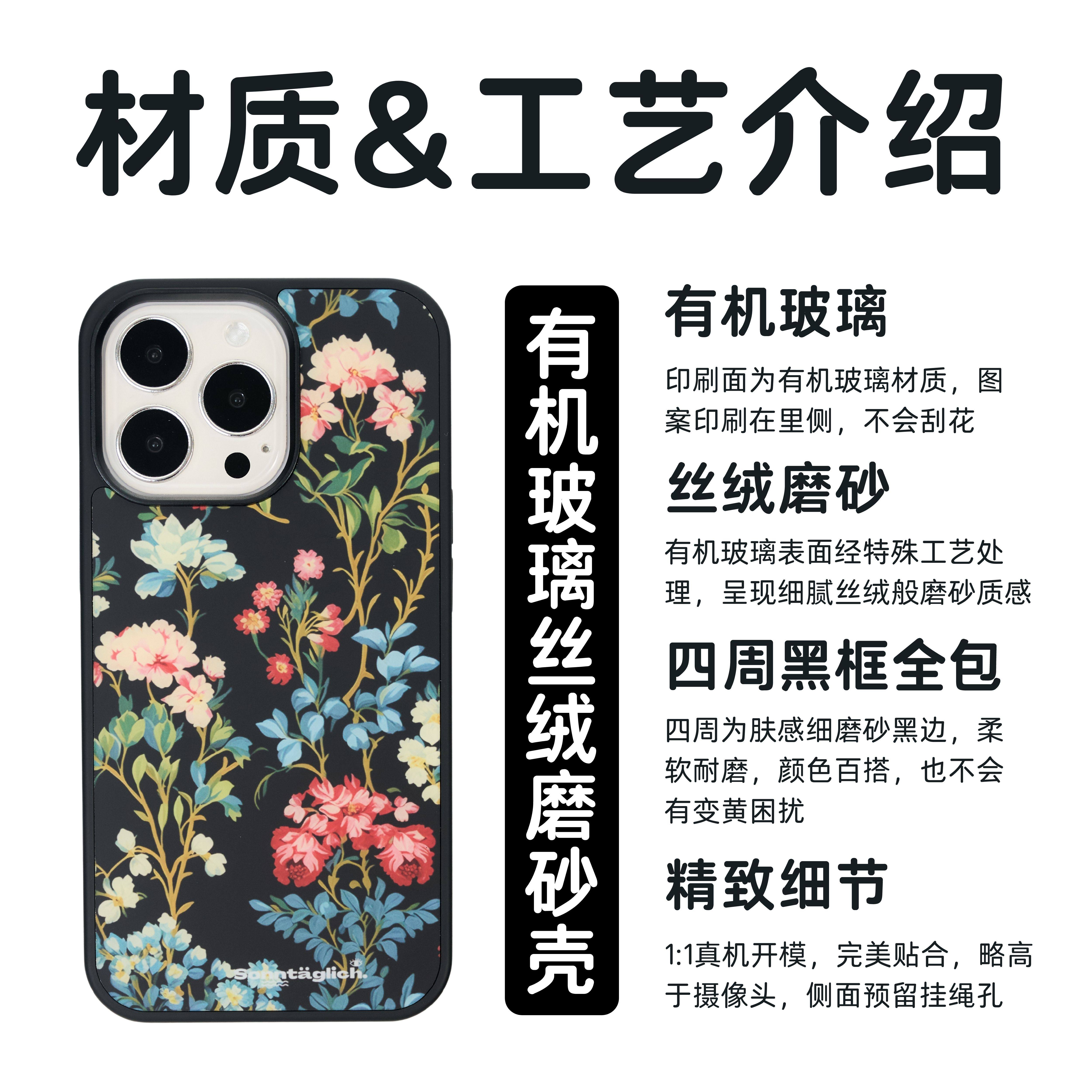📚 【艺术家授权款】星期天家花事丝绒磨砂黑边全包有机玻璃磁吸全包适用iPhone14Promax手机壳ins苹果13艺术