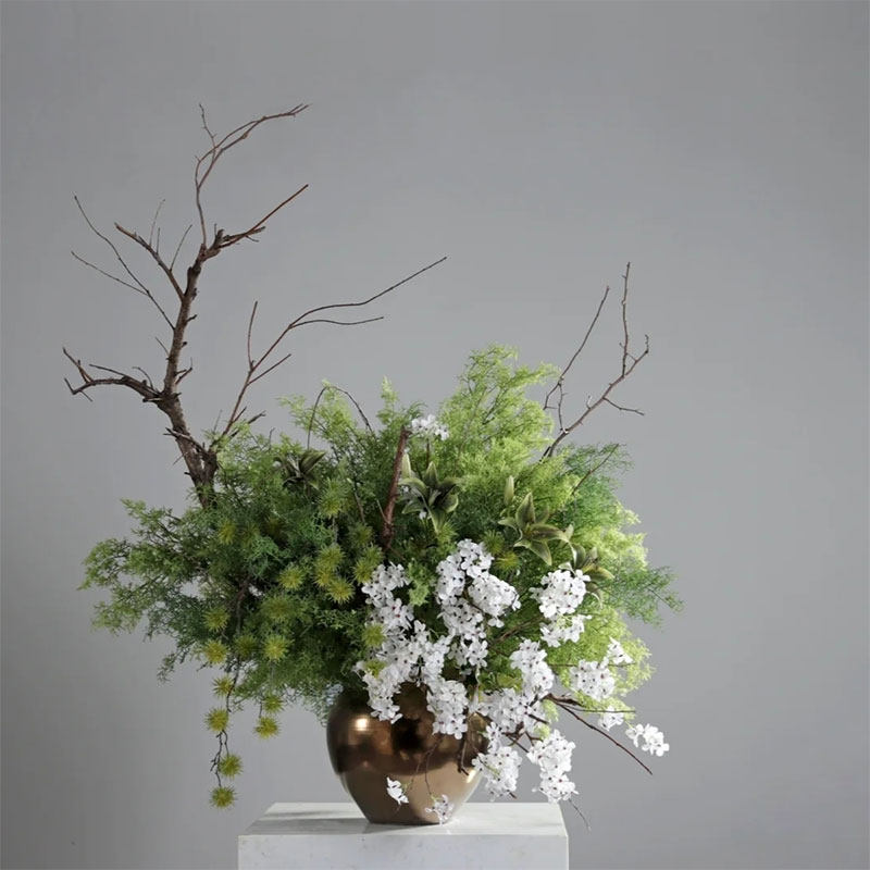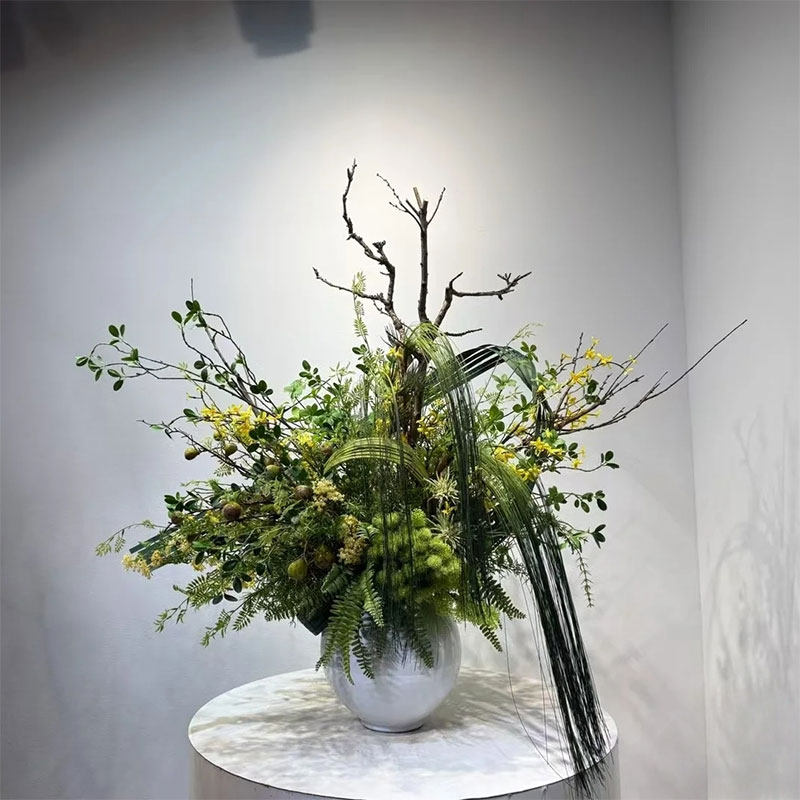 📚 现代森系自然风枯枝黄栌花艺圆桌盆花酒店前台会所样板间软装摆件