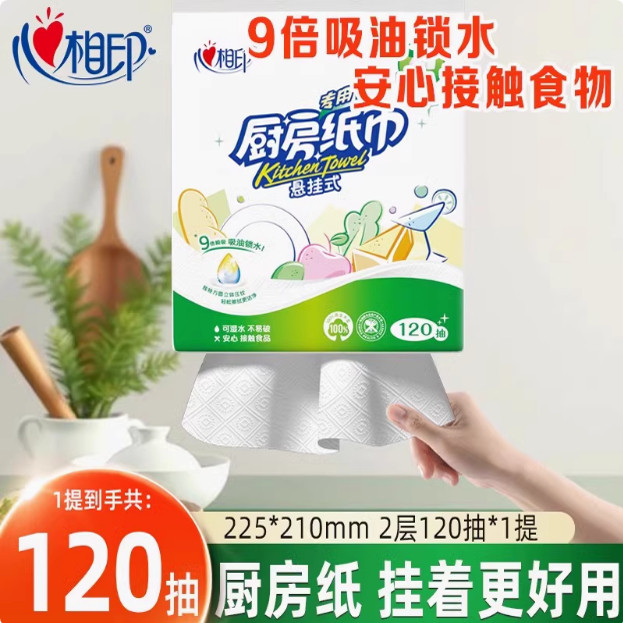 📚 心相印厨房用纸吸油吸水抽纸食物专用擦油厨房纸心心相印纸巾整箱