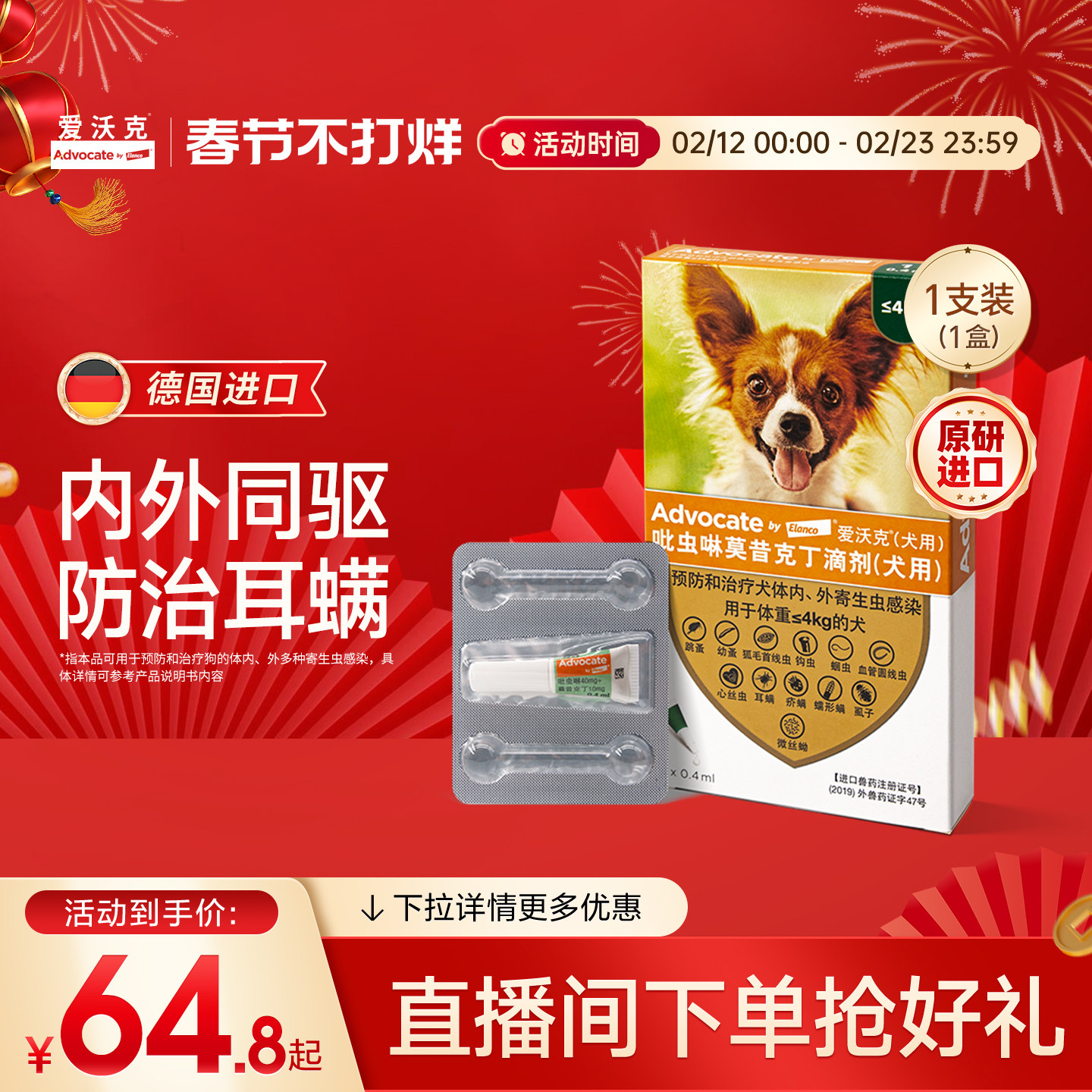 79¥ HU006 0mboULmMLg9¥ https://m.tb.cn/h.7BlgvIh 爱沃克体内外驱虫滴剂幼小中大型犬宠物狗跳蚤耳螨幼蚤虱子单支装 --------------------- 【原售价】135元 【现售价】72元。