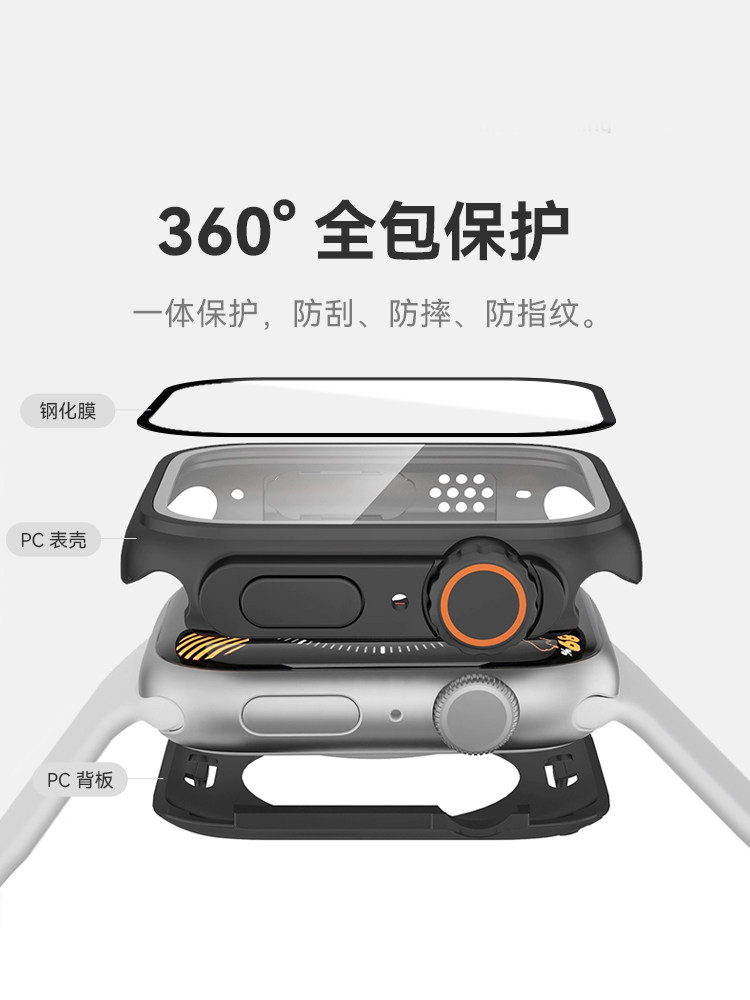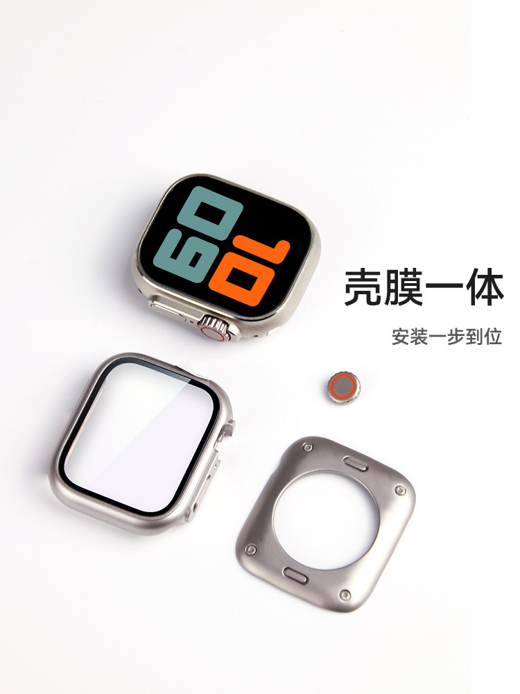 📚 2023新款iwatch8表壳苹果s9手表apple watch9表带s8壳膜一体ultra超薄保护s7钛合金s6防水s5高端小众se钢化壳