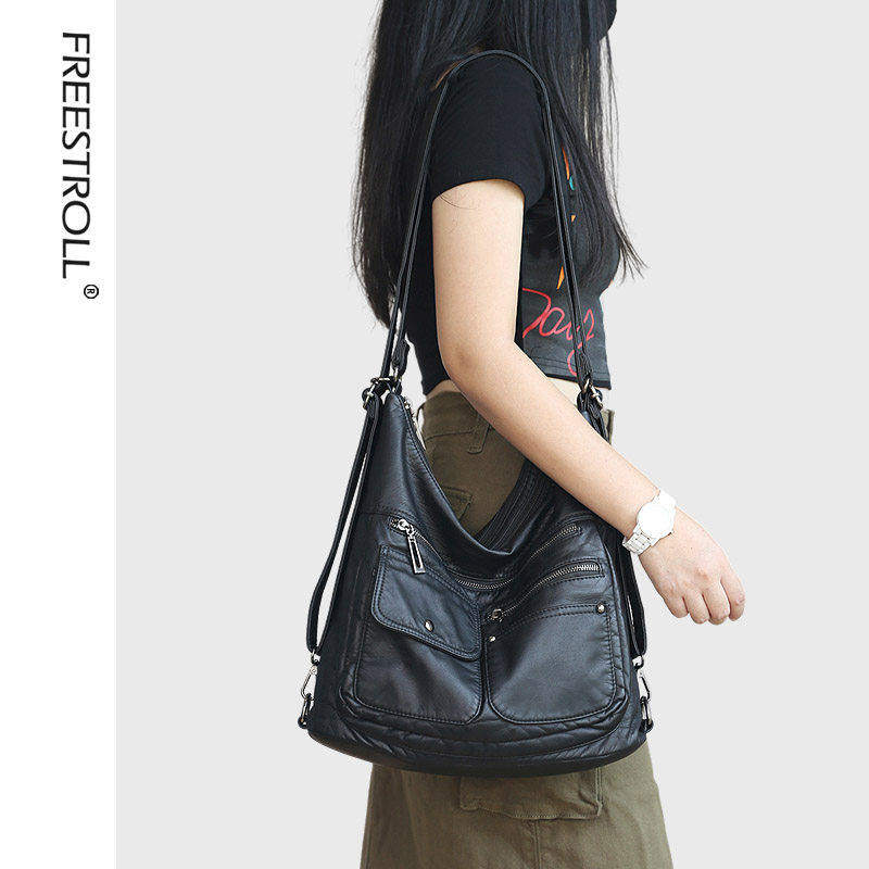📚 法式时尚女包托特包机车单肩双肩斜挎包一包三用休闲大容量多口袋