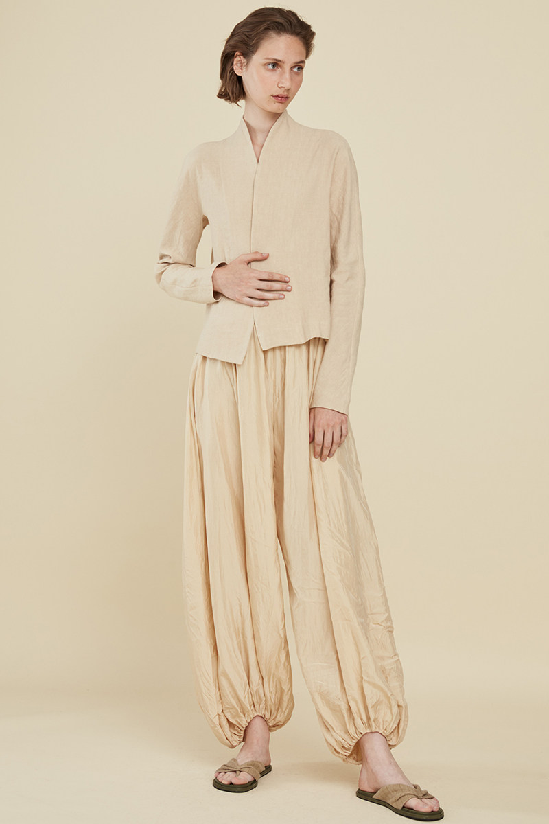 📚 东方豆蔻春夏新款色织丝麻气质纯色咖啡米女上衣单件纯色外套