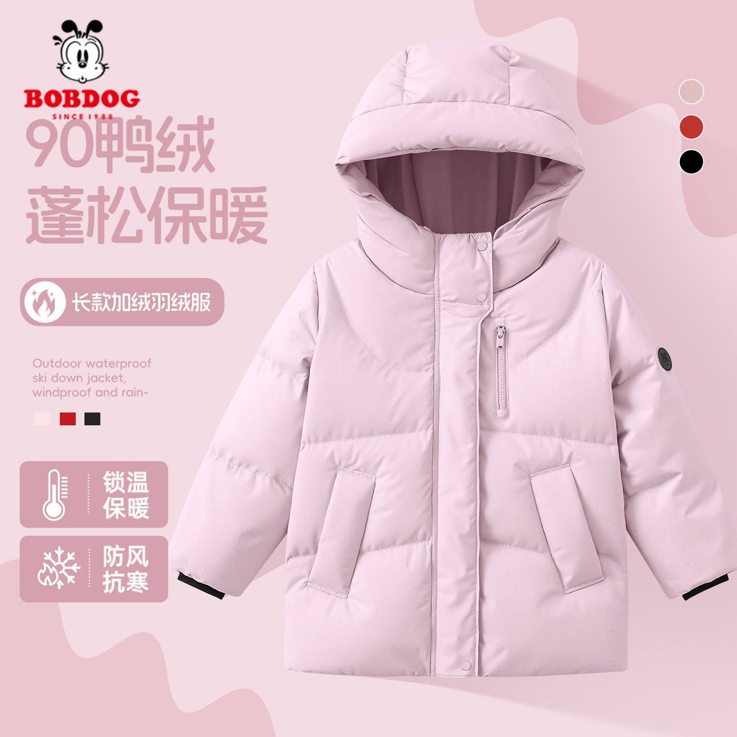 💥种草!巴布豆女童红色羽绒服加厚保暖2025新款,女孩的温暖冬日守护💖