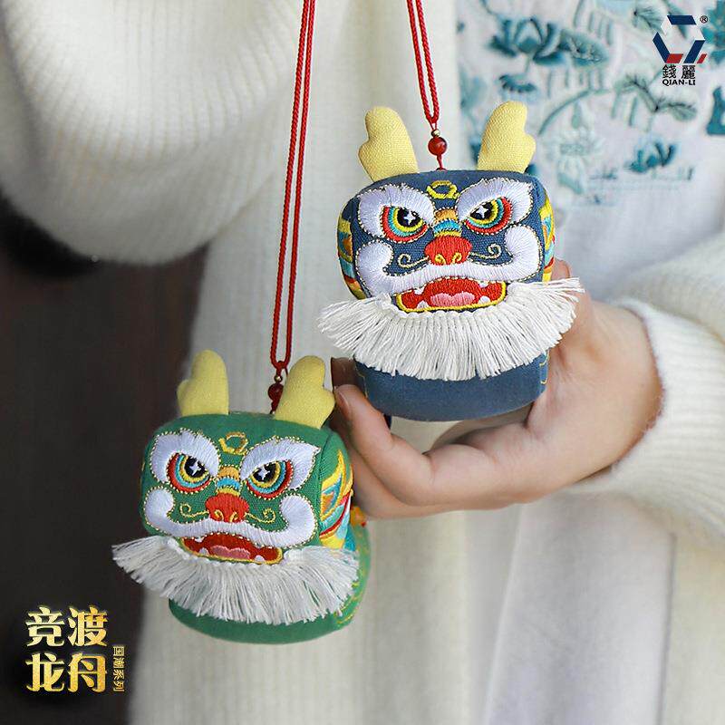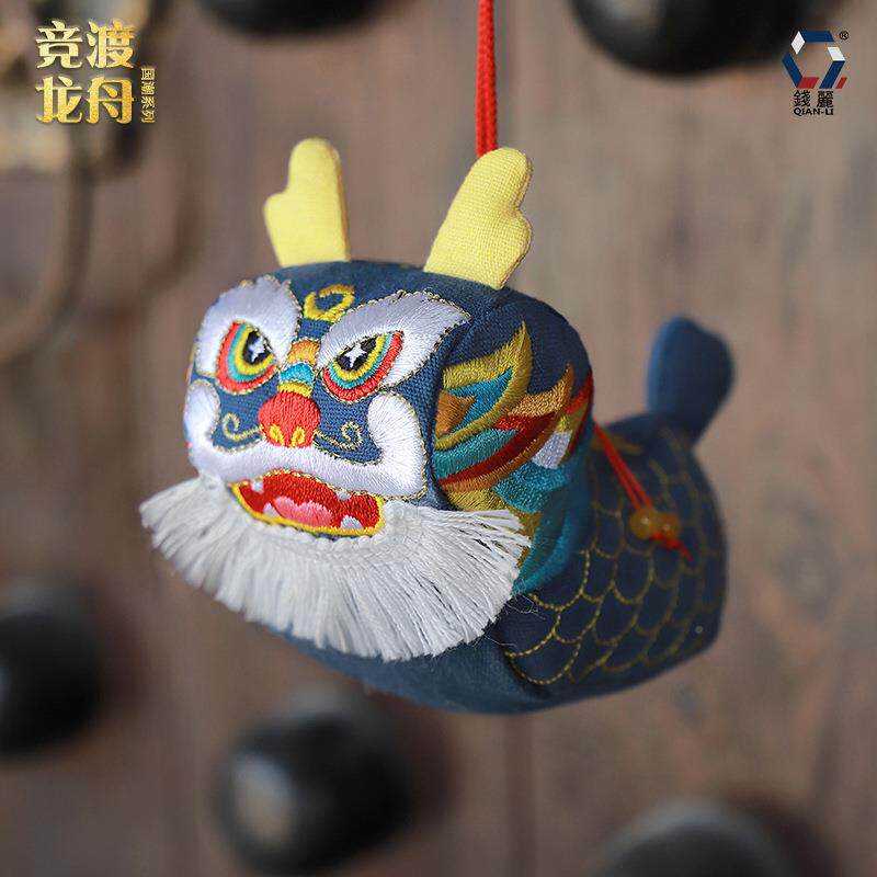 📚 端午摆86礼品立体刺绣龙车挂龙舟香囊中件国风立体香包件
