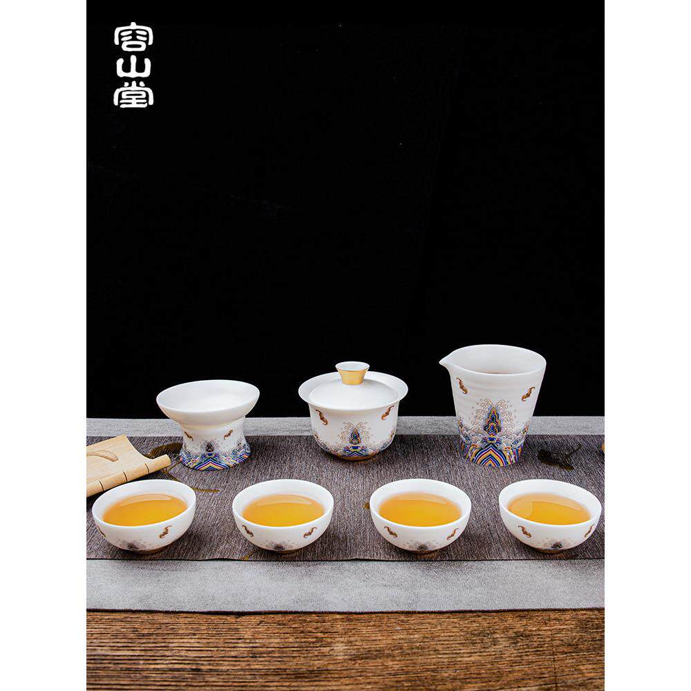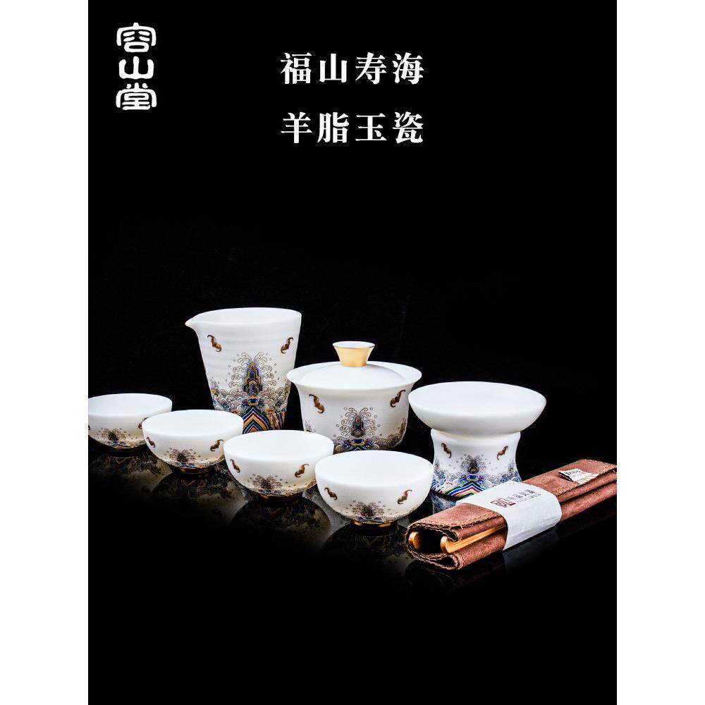 📚 荣山堂福山寿海羊脂玉瓷全套茶具套套套盖碗茶杯搪瓷白瓷家庭礼品