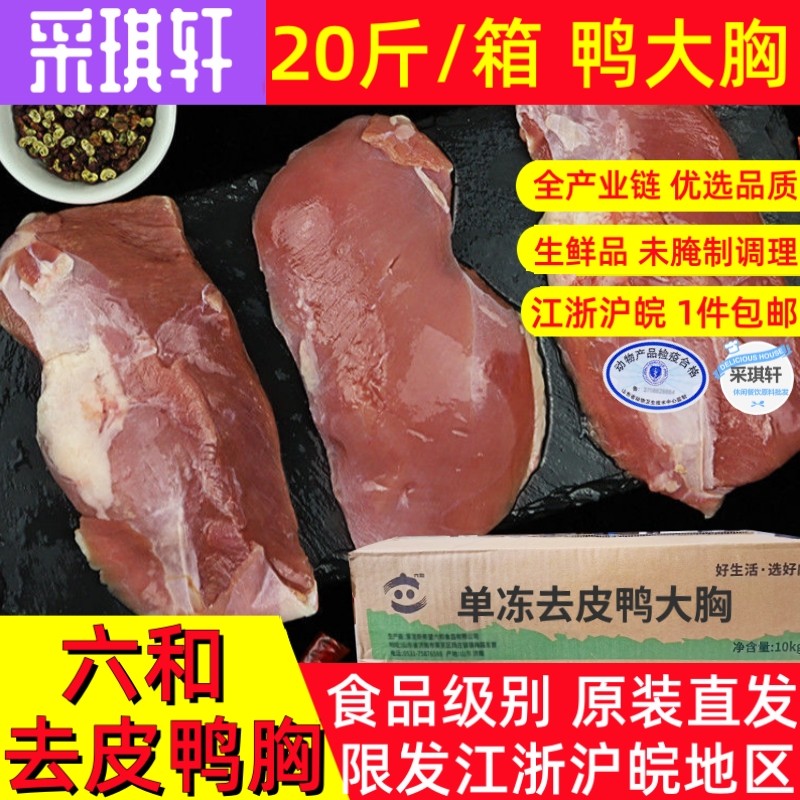 📚 鸭胸肉六和去皮鸭胸肉20斤整箱单冻鸭大胸生鲜鸭脯肉未腌制冷冻鸭