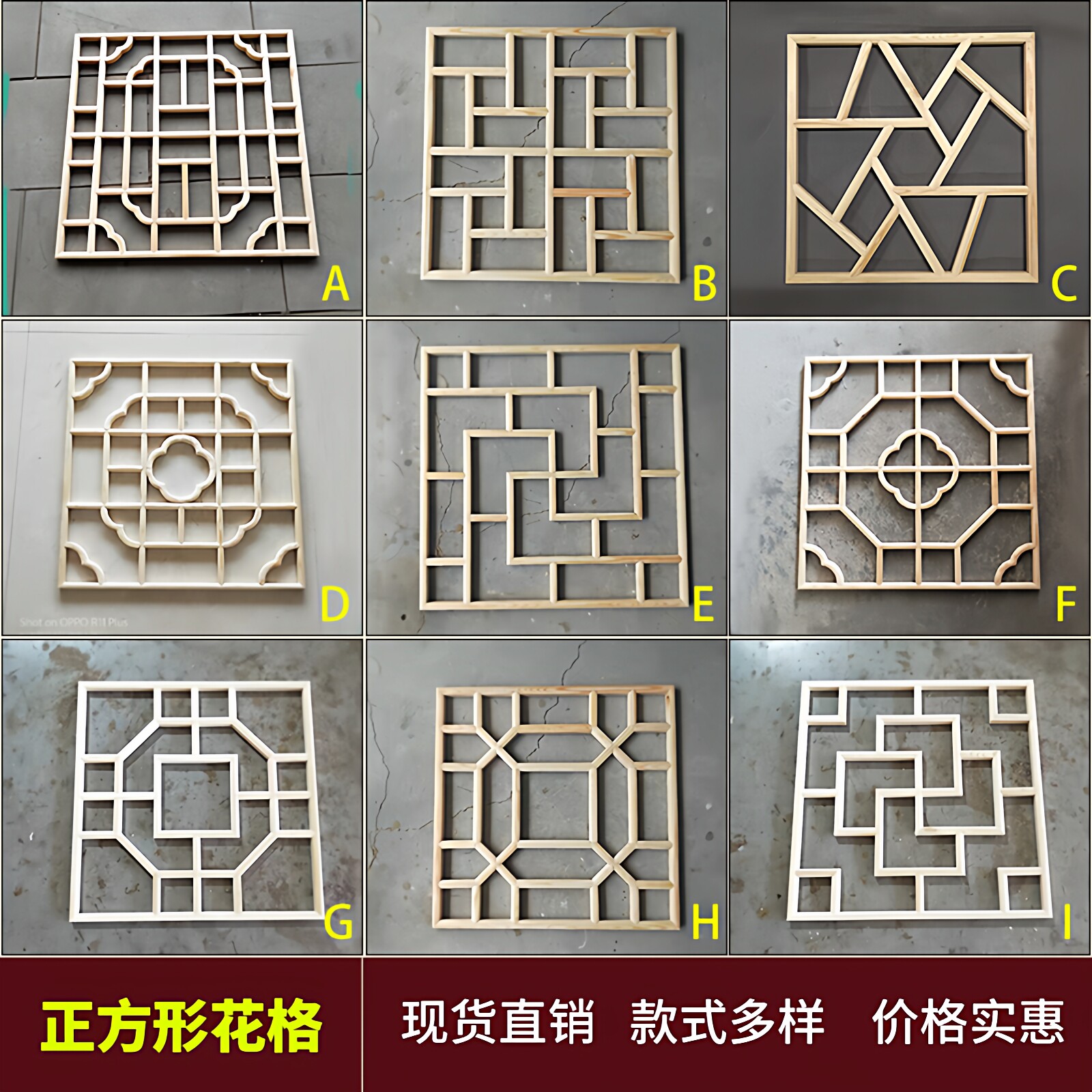 📚 实木花格镂空中式吊顶背景装饰 格栅木雕定制 窗棂花窗正方形木格