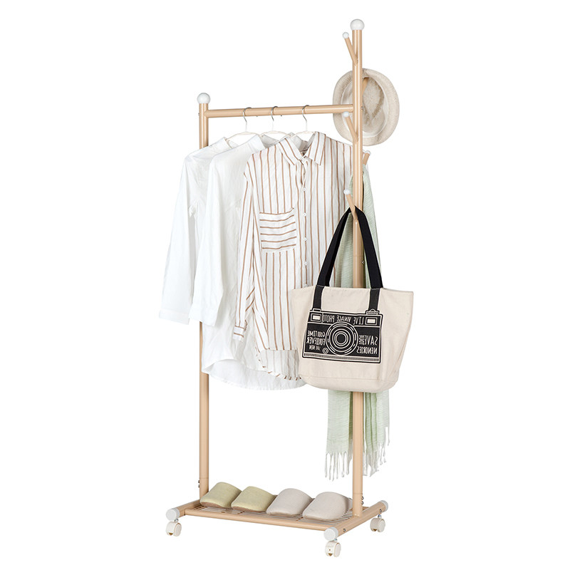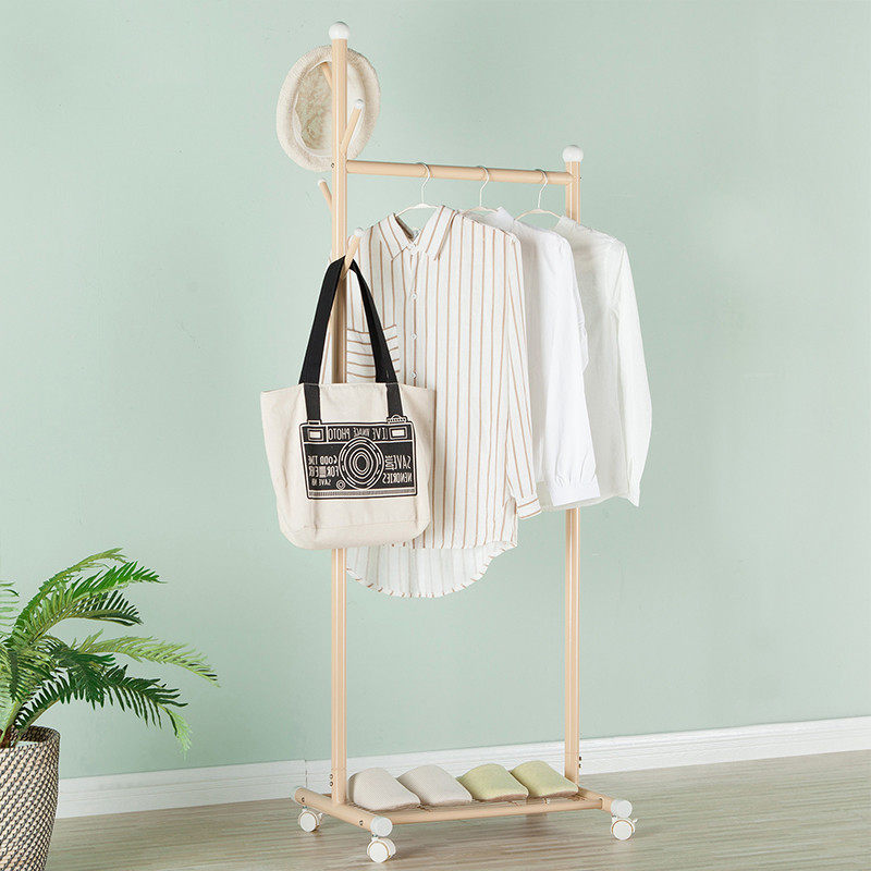📚 晾衣架落地单杆式挂衣架带轮宿舍室内阳台金属晒衣架小型