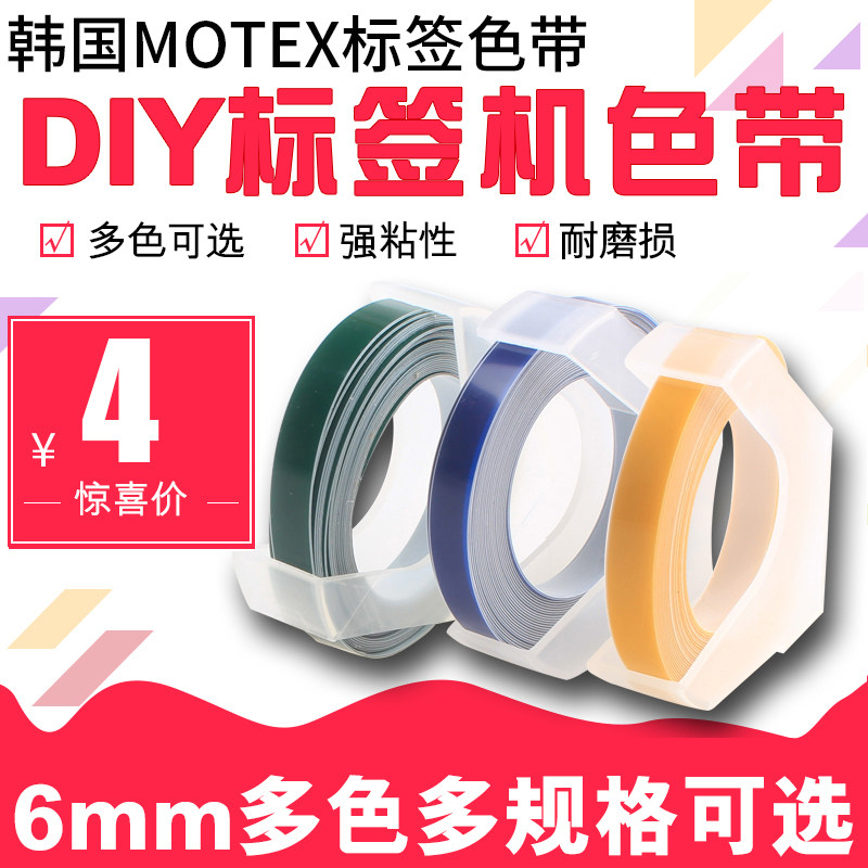 📚 韩国MOTEX标签机色带6MM手动标签带标价机打码机摩登思凹凸3D刻字机dymo达美1610/1540打价格便签机打印字机