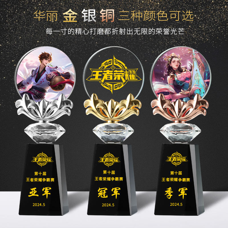 📚 王者荣耀奖杯水晶定制英雄联盟LOL电竞游戏团体比赛MVP冠军纪念品