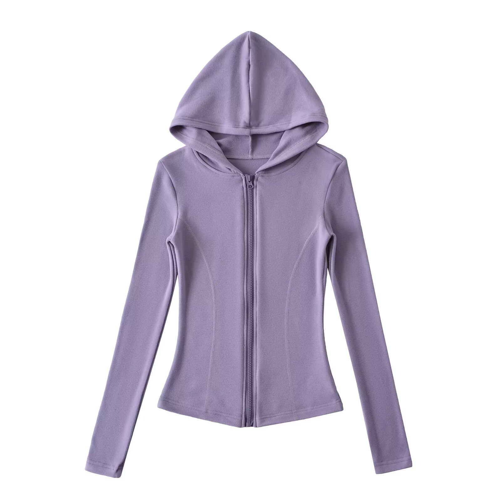 📚 绝绝紫~双面绒德连帽拉链开衫遛弯舒适短外套修身百搭洋气上衣女