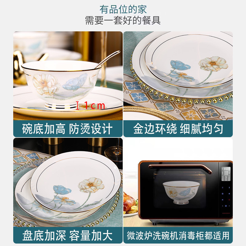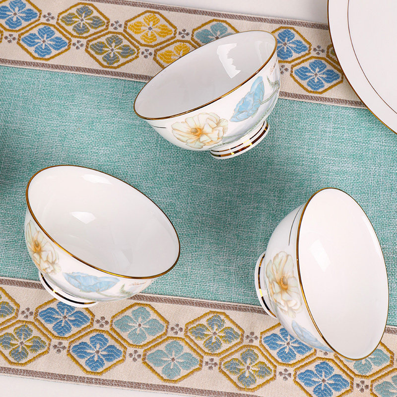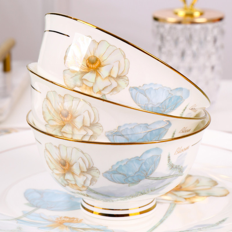 📚 景德镇陶瓷餐具碗家用中式防烫高脚碗4/6/10个装吃饭碗面碗盘子
