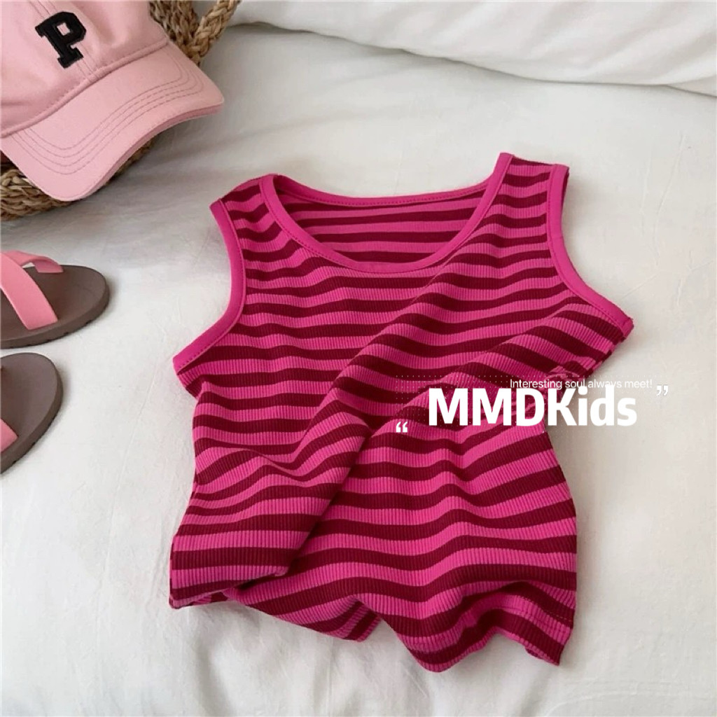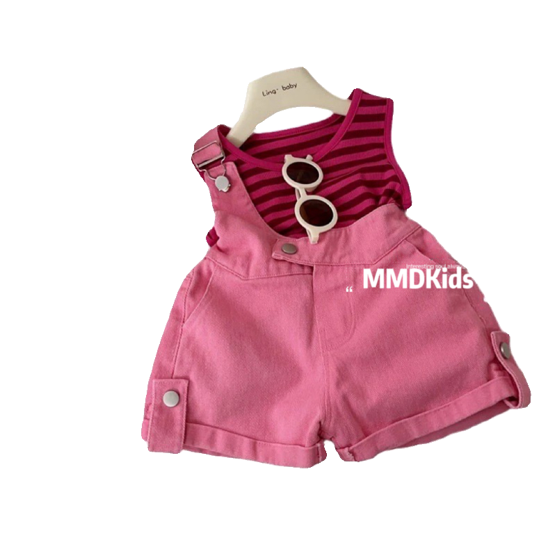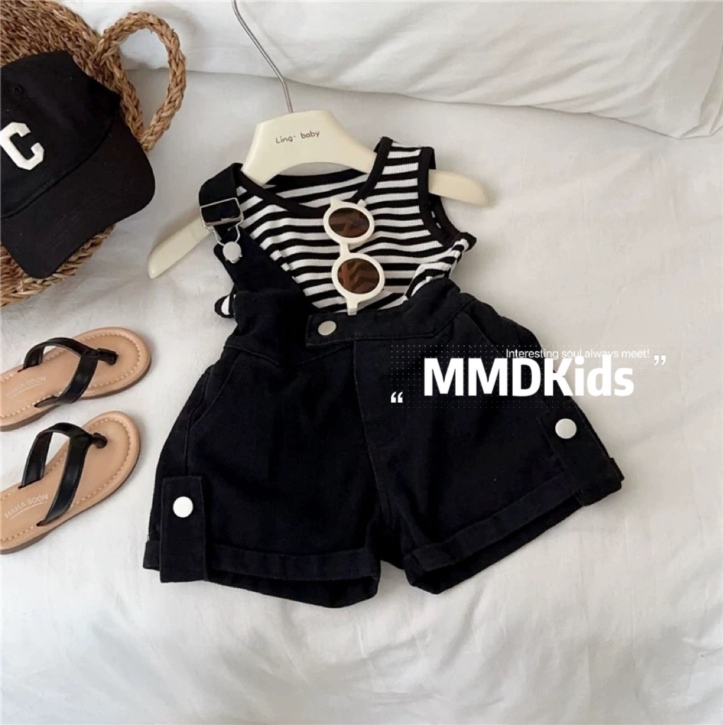 📚 2025新款女童牛仔背带裤套装儿童宝宝夏装条纹背心背带短裤两件套