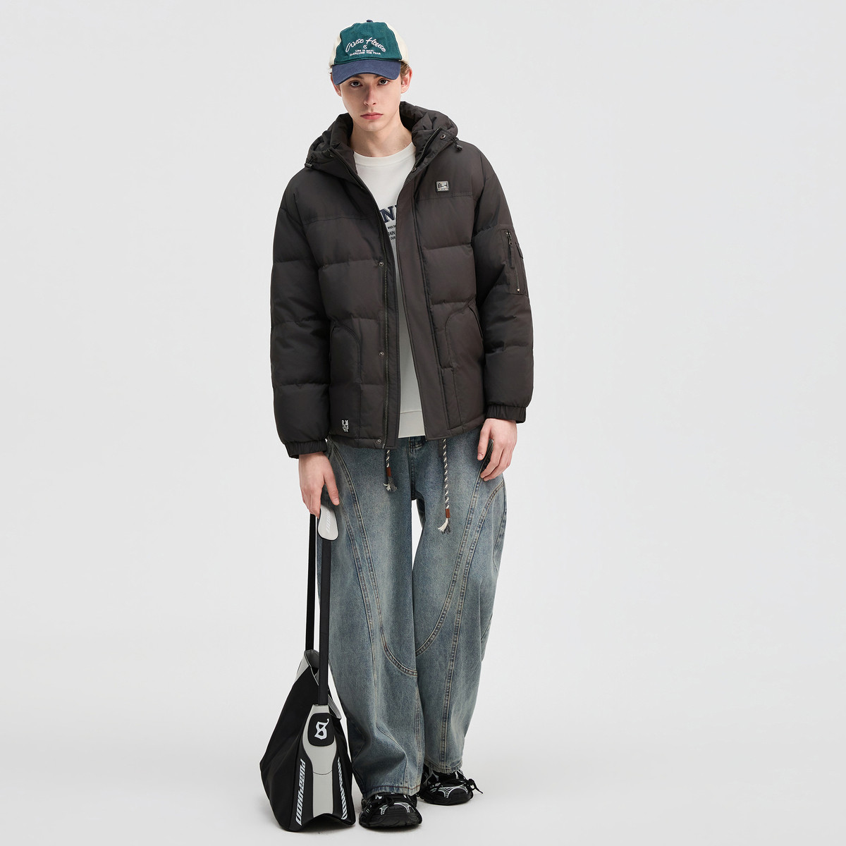 📚 唐狮冬加厚短款羽绒服男连帽保暖黑色百搭时尚羽绒外套面包服