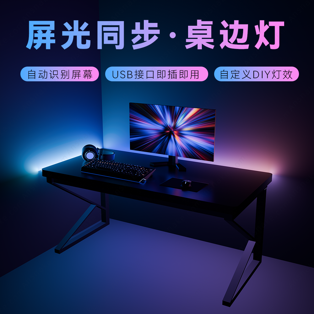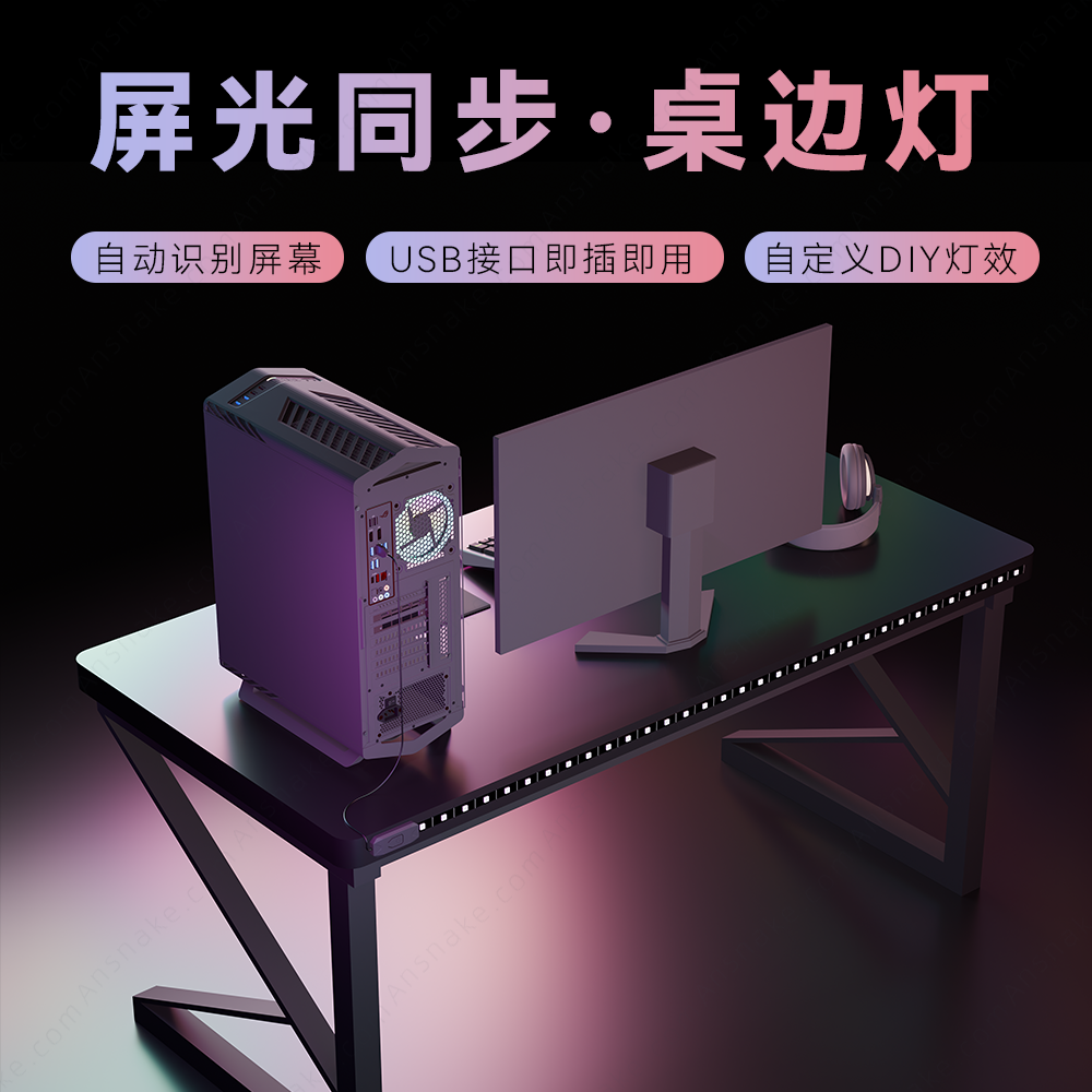 📚 Ansnake幻蛇电脑屏幕追光氛围桌边灯电竞房游戏RGB流光溢彩氛围灯