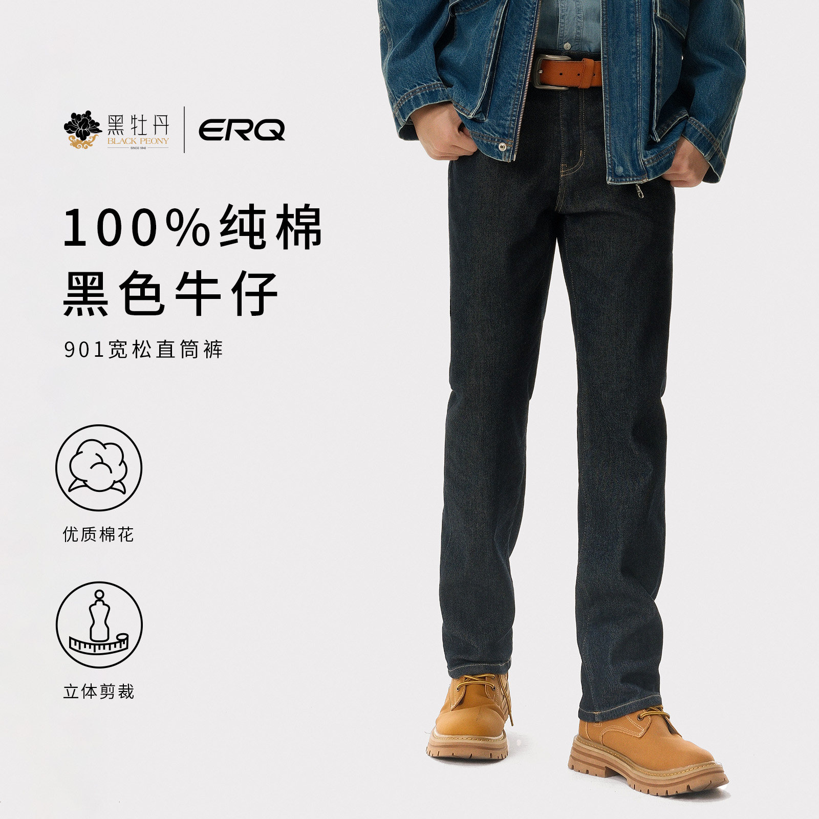 📚 ERQ901经典黑牛男士秋季宽松复古直筒牛仔裤全棉商务水洗