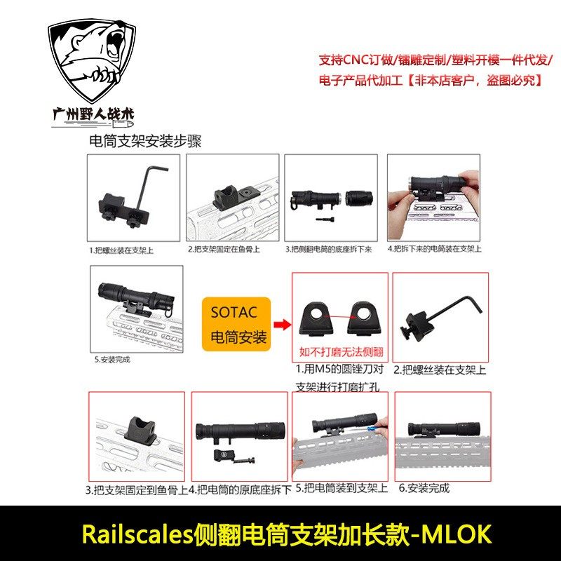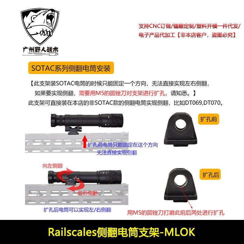 📚 【Railscales侧翻电筒支架】M340C M640DF战术手电筒侧翻底座MLOK