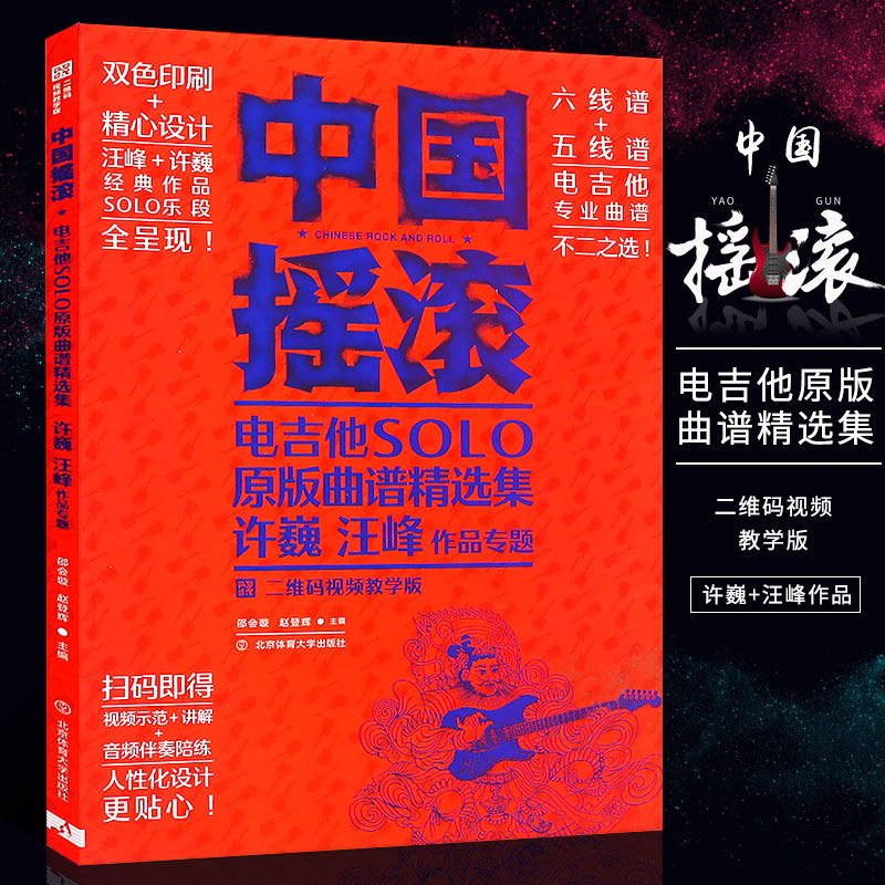 📚 正版电吉他曲谱书籍 中国摇滚电吉他solo原版曲谱精选集 许巍汪峰作品 附视频教学 初学者入门自学六线谱五线谱吉他独奏弹唱教程书
