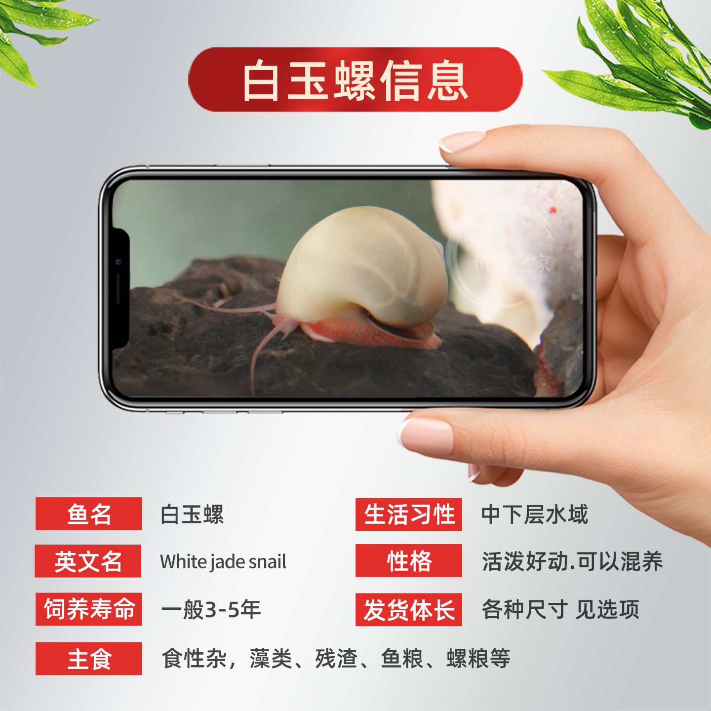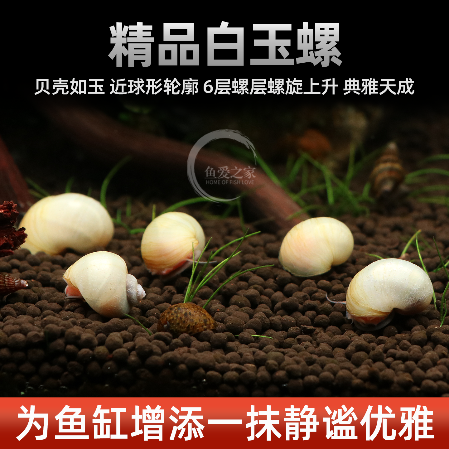 📚 白玉螺水族鱼缸观赏螺淡水冷水新手好养苹果螺除藻清垃圾工具螺