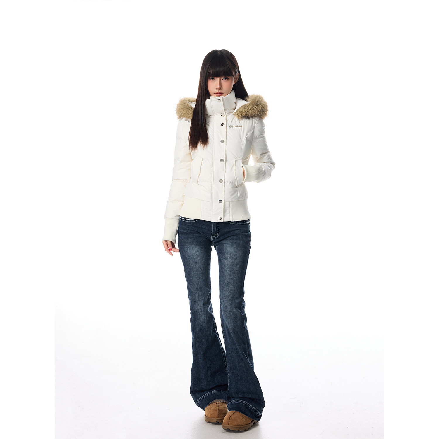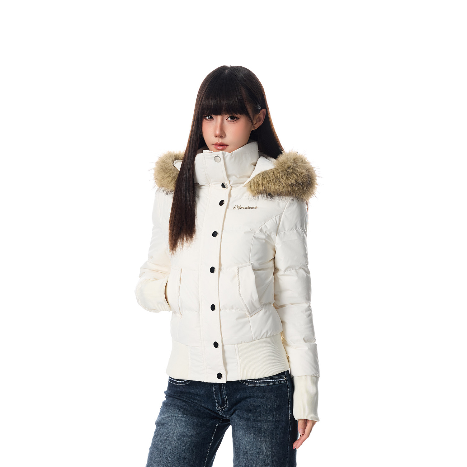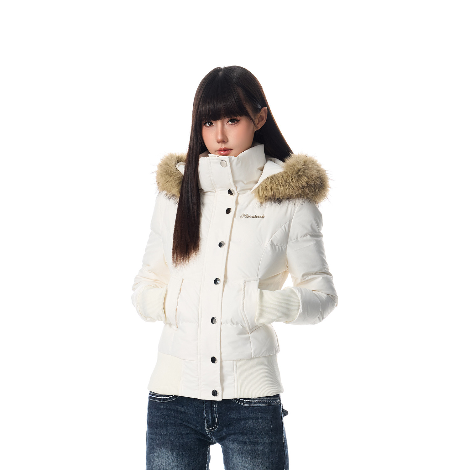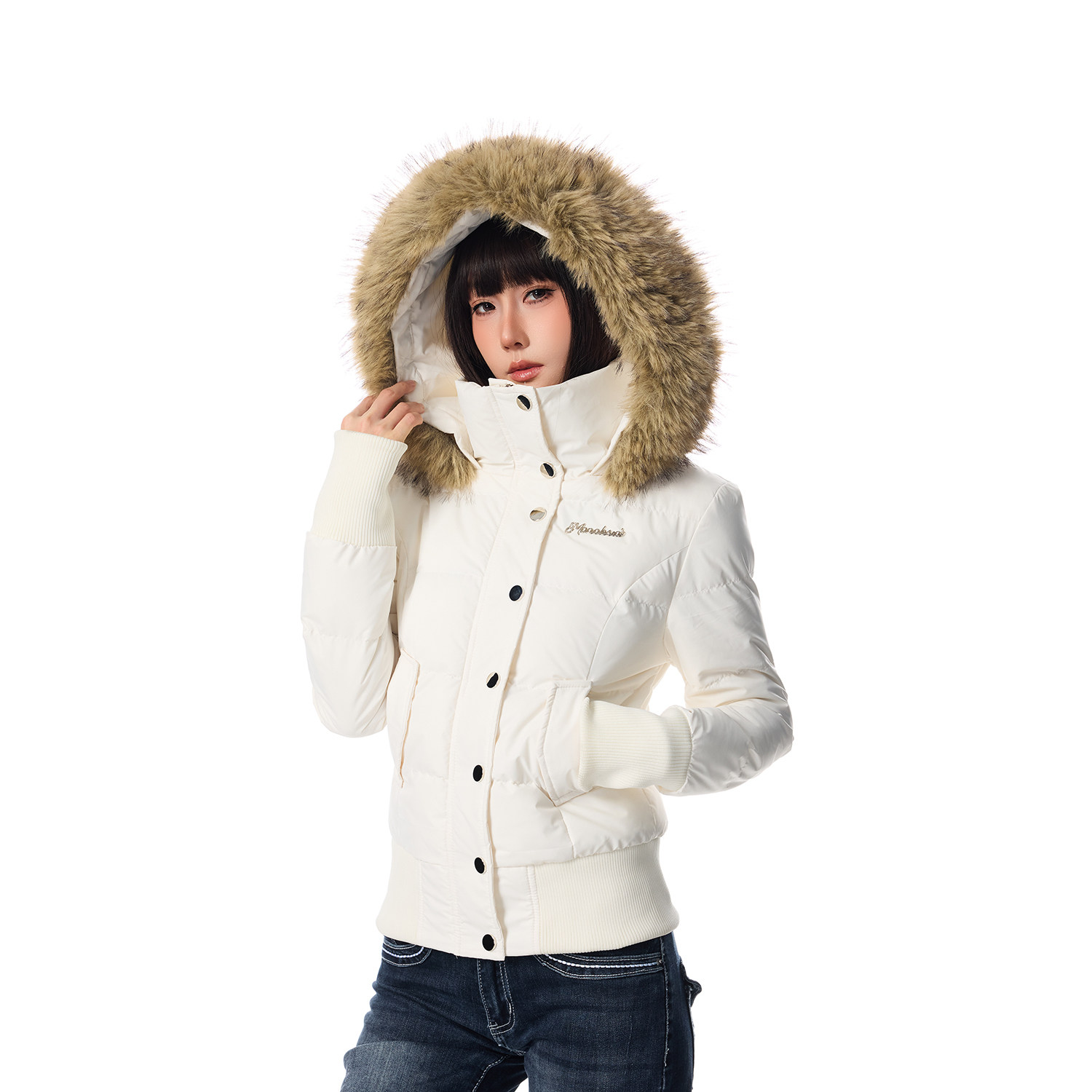 📚 SREK女冬季韩系学院风连帽毛领棉衣服女短款白色宽松百搭防寒外套