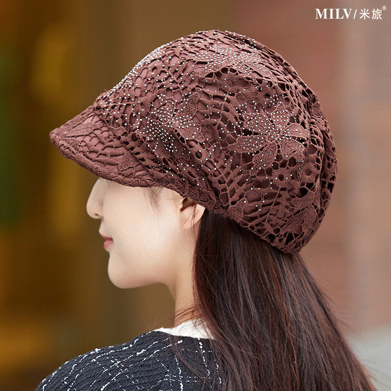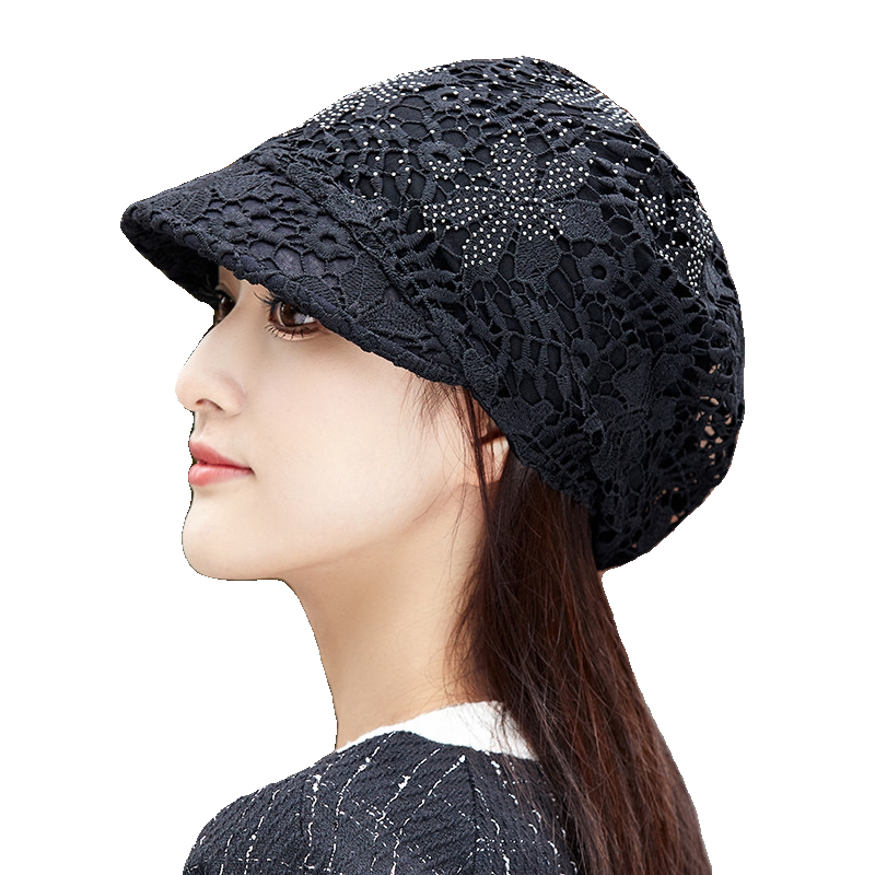 📚 轻薄透气蕾丝包头鸭舌帽女春夏优雅宽沿堆堆帽光头帽遮白发头巾帽
