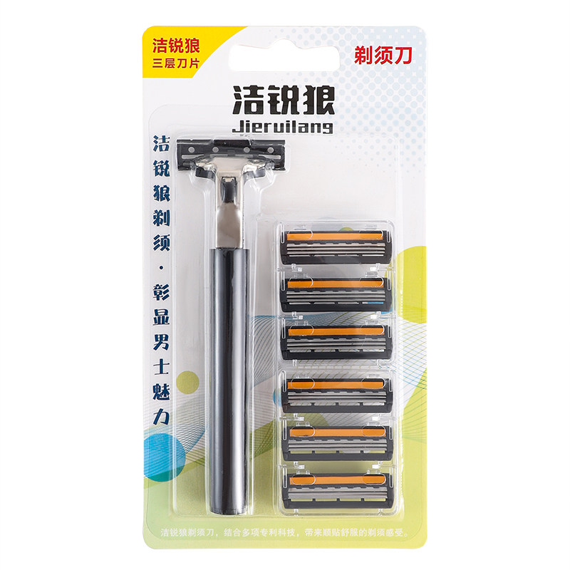 📚 洁锐正品3层剃须刀片老式手动三层刮胡刀男士胡须刀片1刀架多刀头