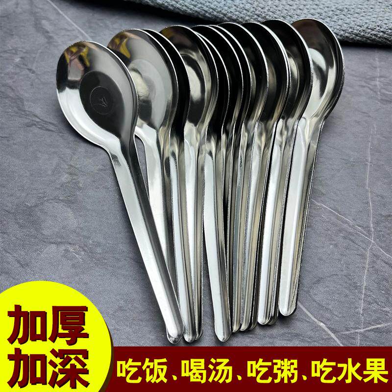 📚 不锈钢勺子家用平底汤匙儿童调羹加厚老式大号喝汤勺成人长柄铁勺