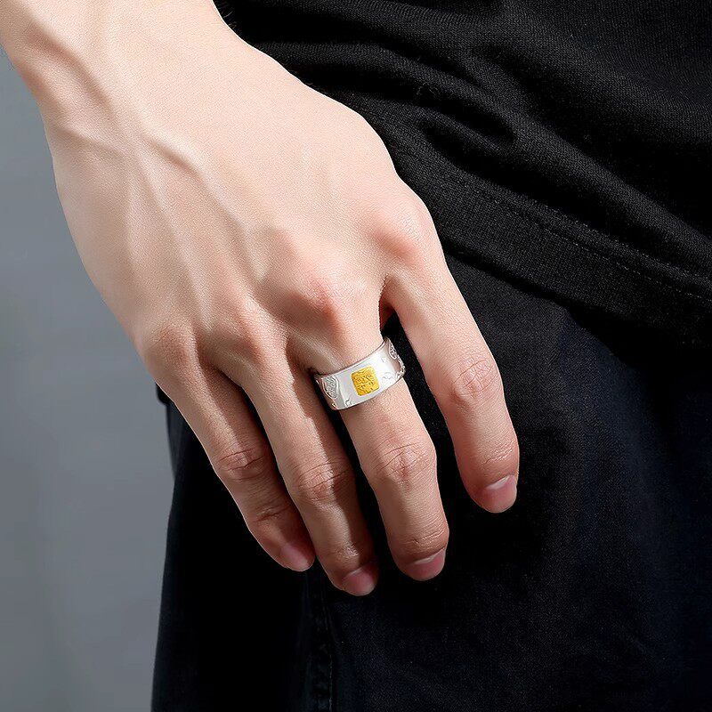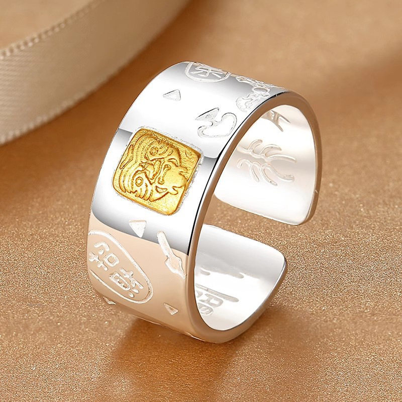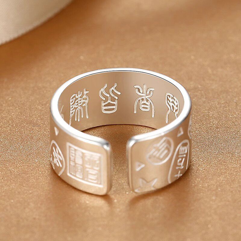 📚 【扎基拉姆】戒指宽版开口实心个性吉言九字箴言指环