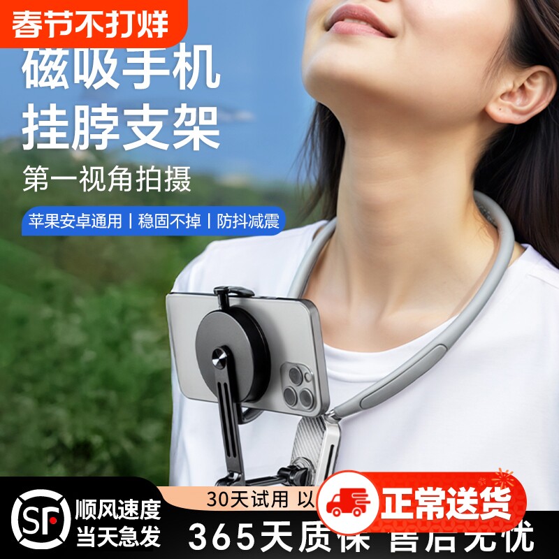 📚 挂脖手机支架磁吸第一视角人称拍摄自媒体抖音直播开车适用大疆action5pro4运动相机胸前固定挂脖拍摄神器