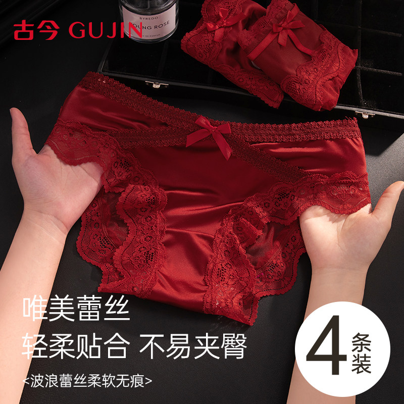 📚 古今红色本命年内裤女士纯棉抑菌裆新款性感少女蕾丝新娘结婚短裤