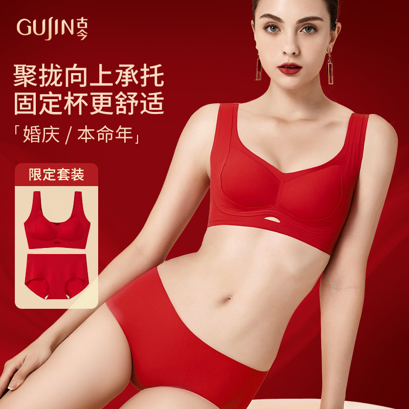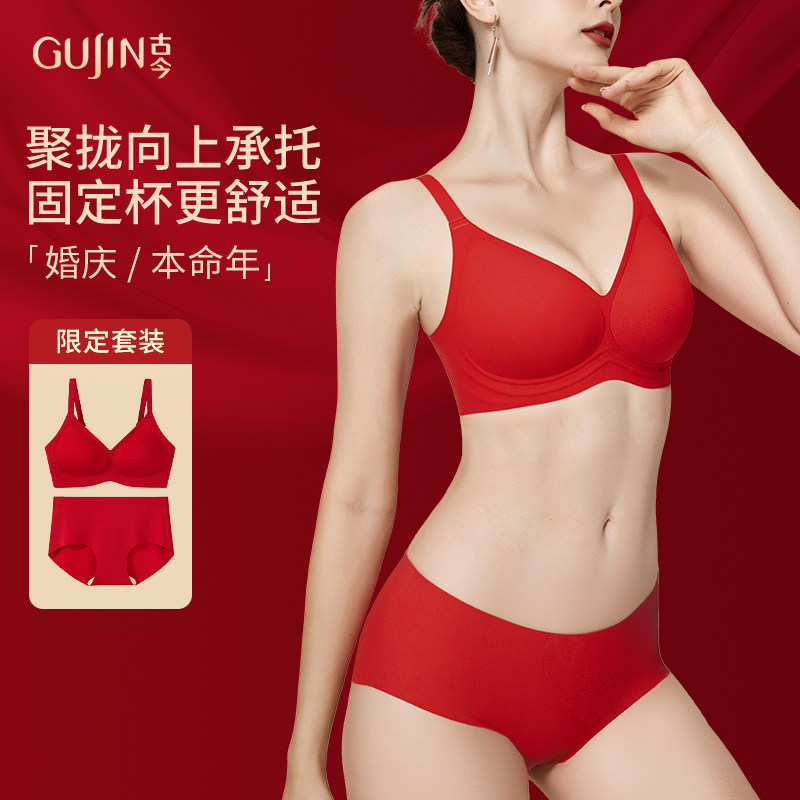 📚 古今好运穿身本命年红色内衣内裤女文胸套装礼盒聚拢无痕新娘结婚