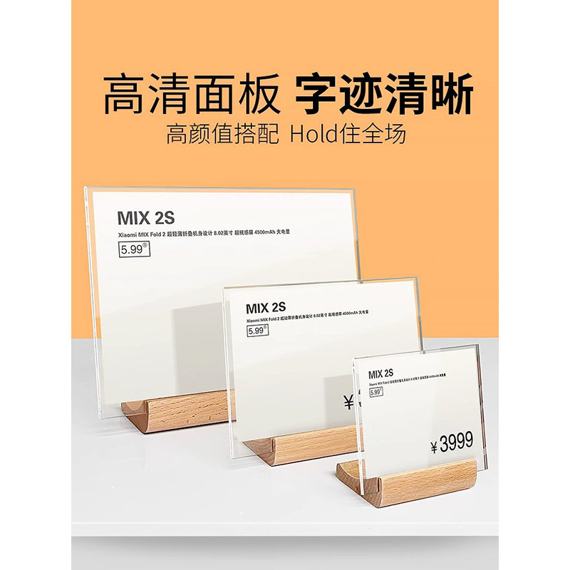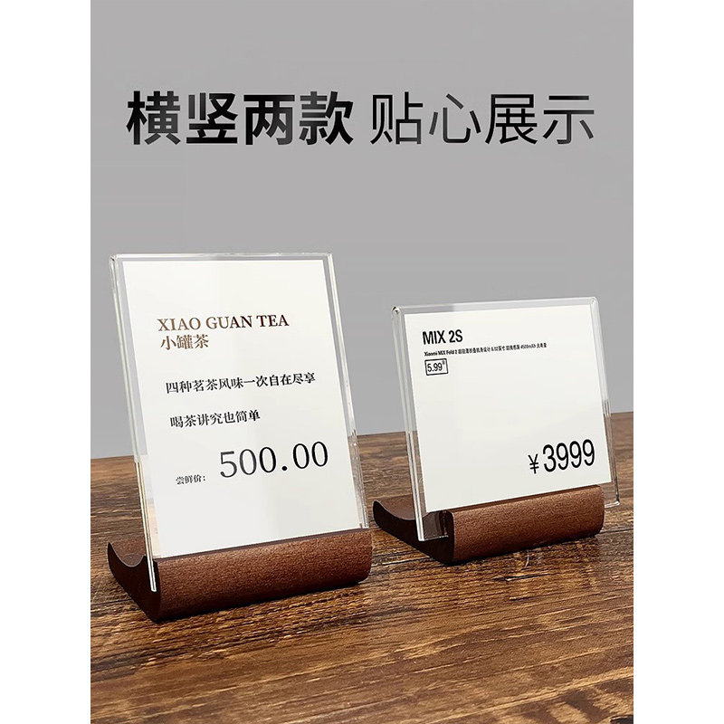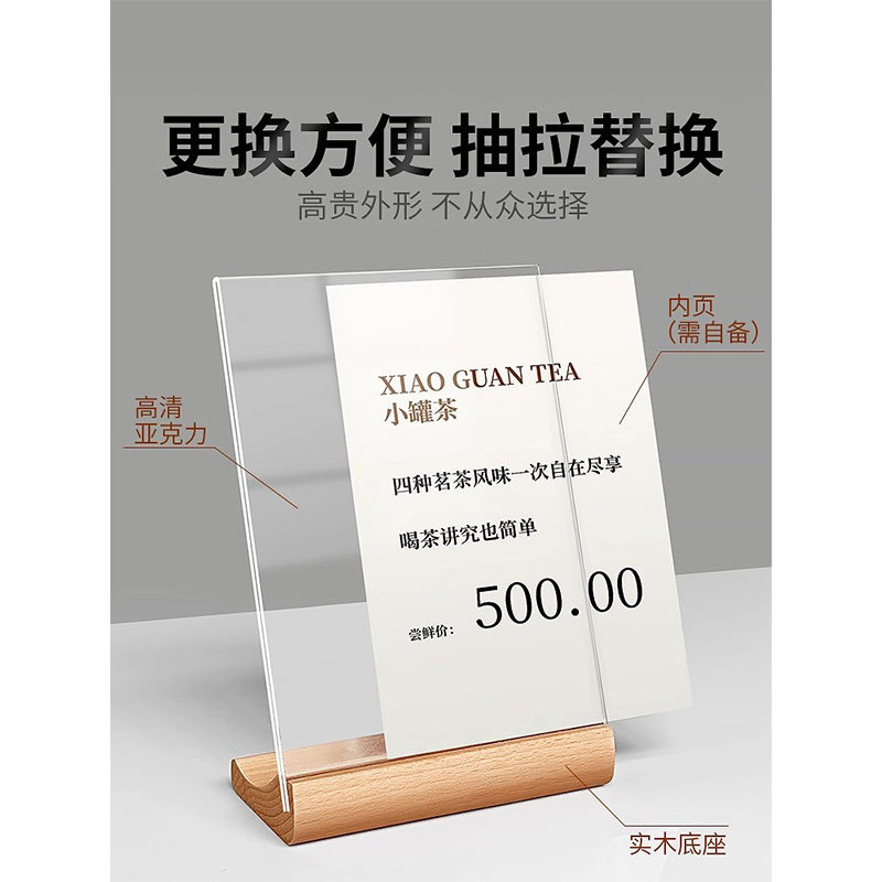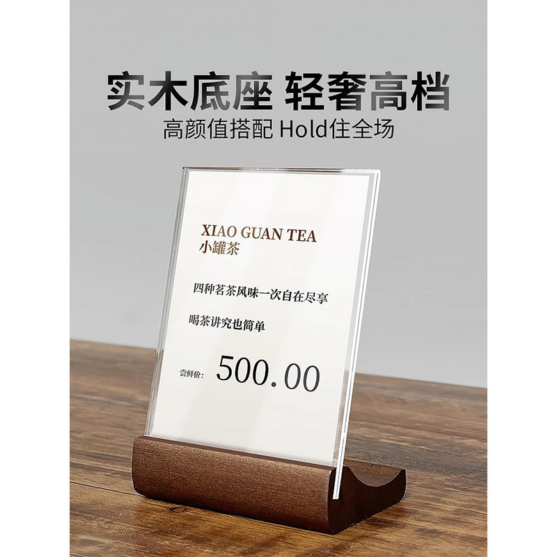 📚 亚克力透明展示架桌牌台卡标识实木广告价目表强磁菜名酒水价格展示牌子价格标价签斜面菜单水晶摆台台签立牌