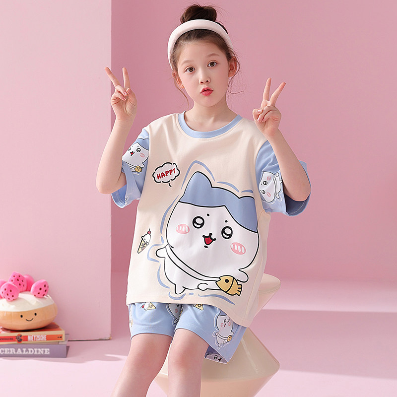 📚 chiikawa女童睡衣夏季薄款短袖套装中大童女孩可爱卡通儿童家居服