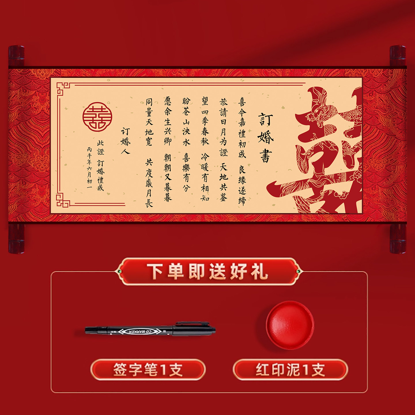 📚 中国风订婚书婚书高级感中式空白卷轴仿手写结婚婚宴摆件摆台用品