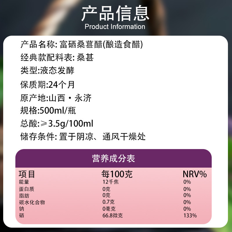 📚 富硒原浆桑葚醋山西酿造可以喝的醋水果果醋桑葚醋原醋非饮料纯醋
