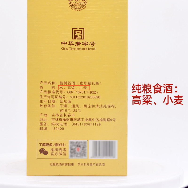 📚 榆树钱壹号献礼版一号白酒 浓香型纯粮酒礼盒装吉林名酒喜宴送礼