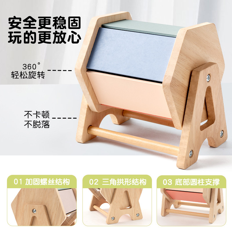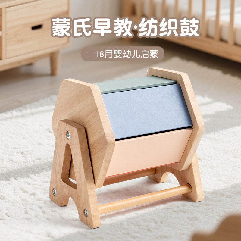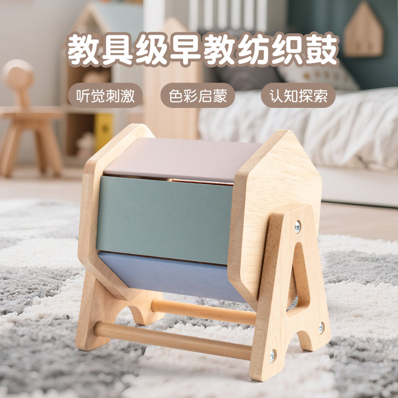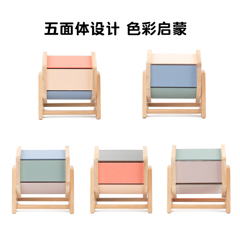 📚 婴幼儿早教蒙氏教具五面体纺织鼓启蒙玩具蒙特梭利认知实木橡胶木