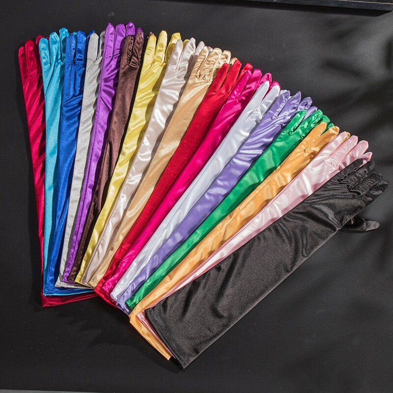📚 弹性丝光时尚百搭复古长款手套舞台配饰新娘结婚拍照礼服防晒袖套