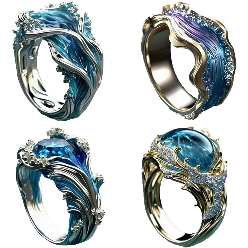 📚 树脂系列女士独立开口Ring站亚马逊海洋戒波浪Wave 戒指跨境 海浪
