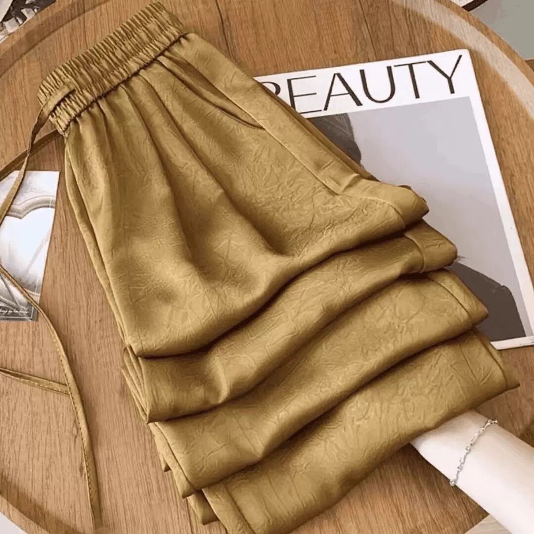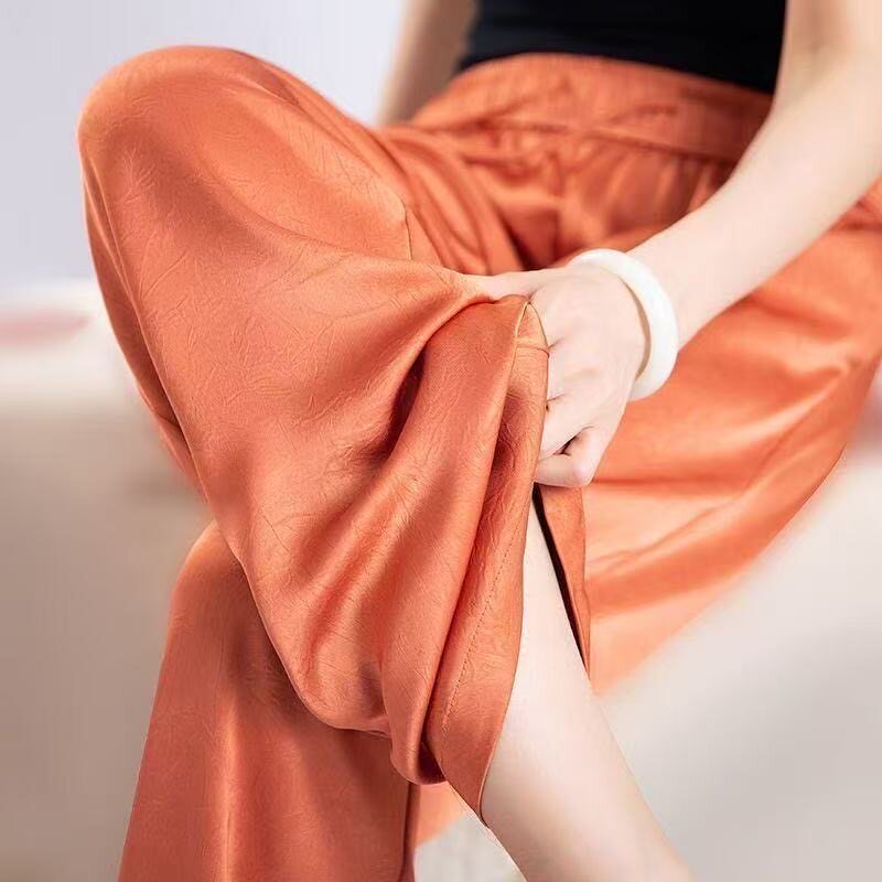 📚 桑蚕丝窄版阔腿裤女夏季女裤高腰垂感真丝裤子宽松显瘦直筒休闲裤