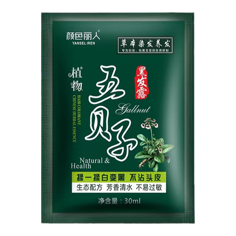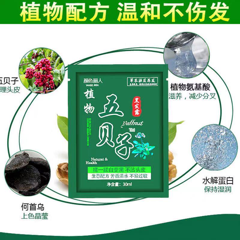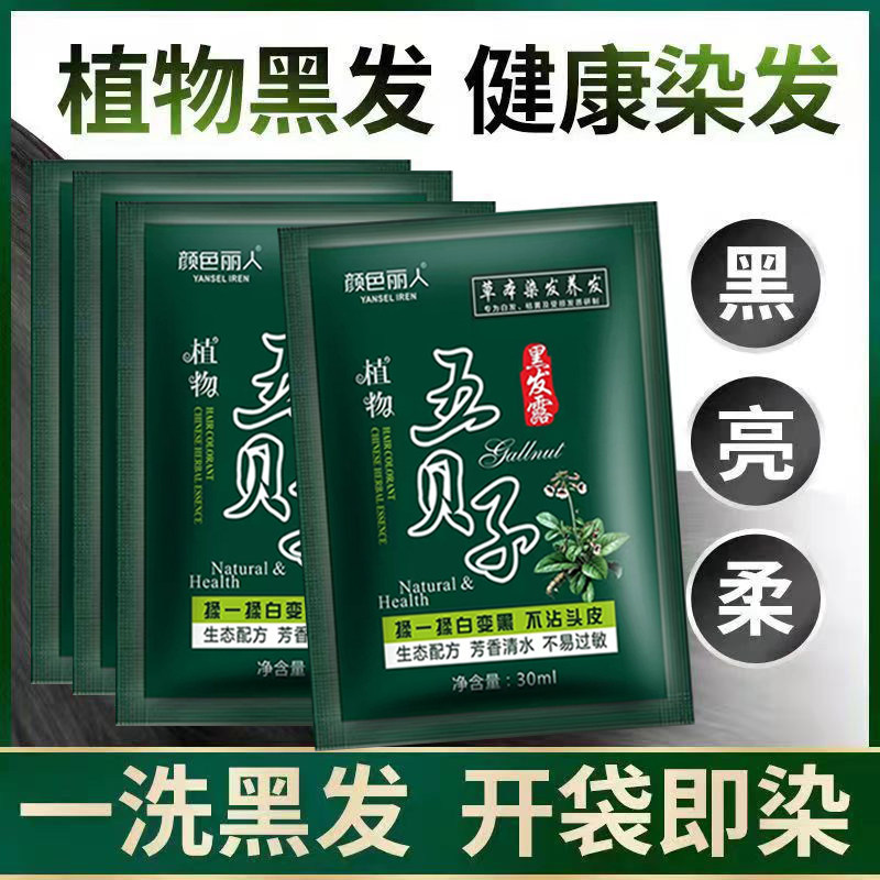 📚 五贝子染发剂一洗黑纯植物正品天然无刺激自然黑不沾头皮自己染膏