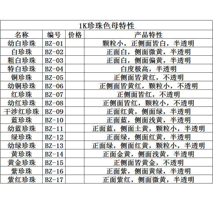 📚 1K珍珠漆色母 汽车漆红珍珠白珍珠蓝珍珠金珍珠紫珍珠水晶白珍珠
