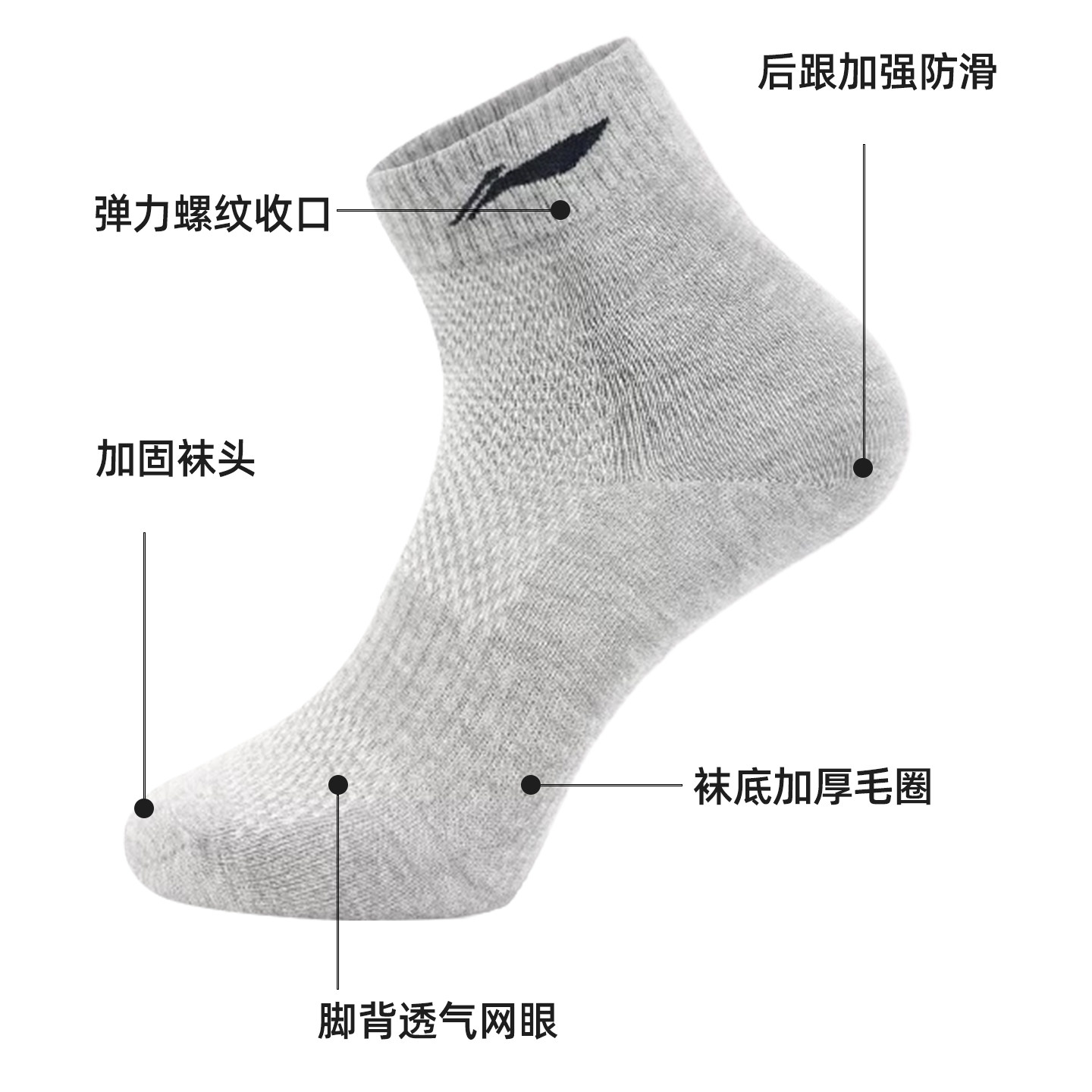 📚 李宁官方袜子男短袜防臭吸汗透气男童薄棉袜男士运动袜青少年夏季