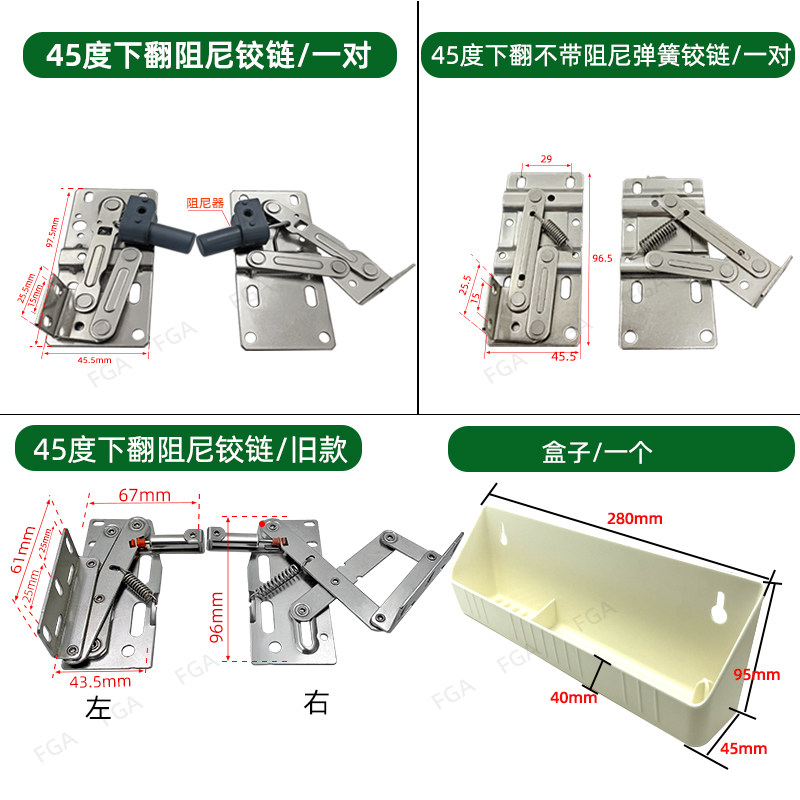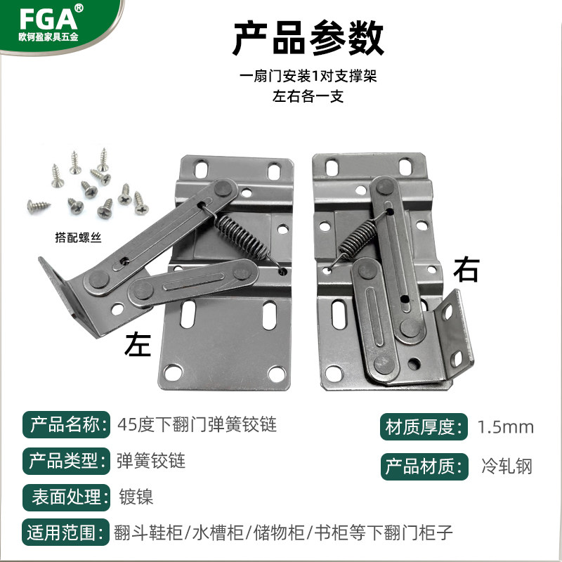 📚 下翻45度支撑链接铰链水槽柜下翻门铰链下翻45度阻尼弹簧铰链五金