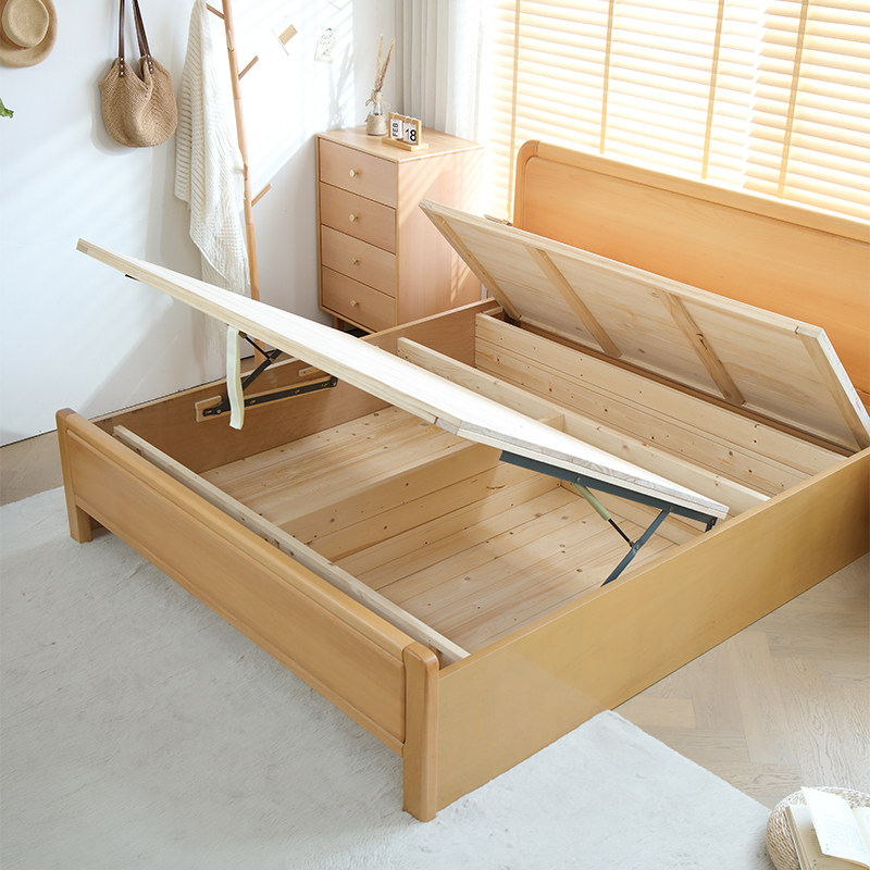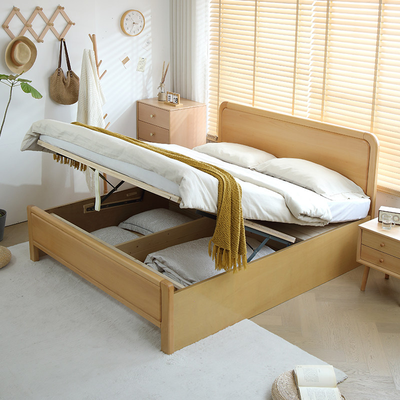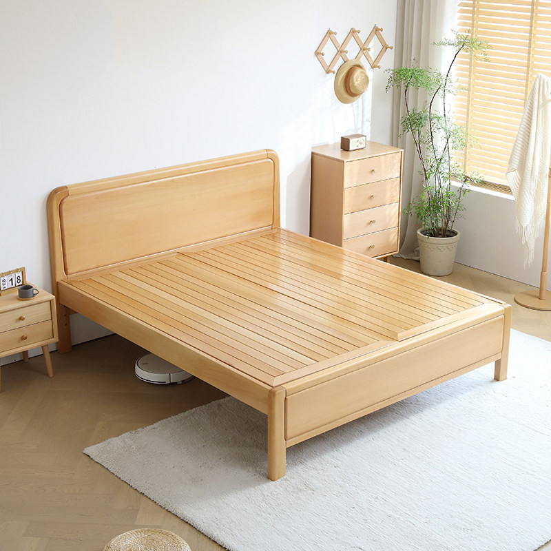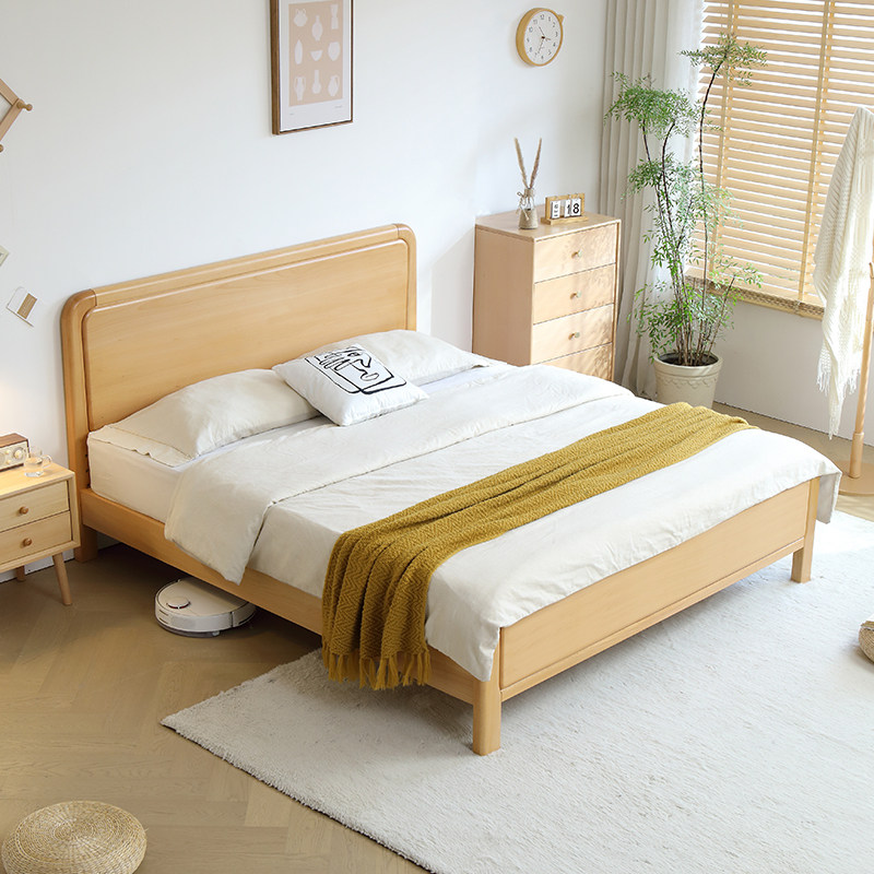 📚 全实木榉木加厚北欧原木风1米5儿童纯简约主卧室小户型双人大婚床