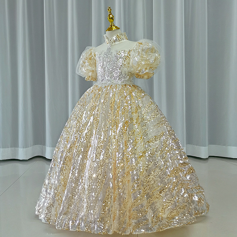 📚 女童弹钢琴演出高端亮丽礼服出租儿童当主持人唱歌闪亮华丽蓬蓬裙