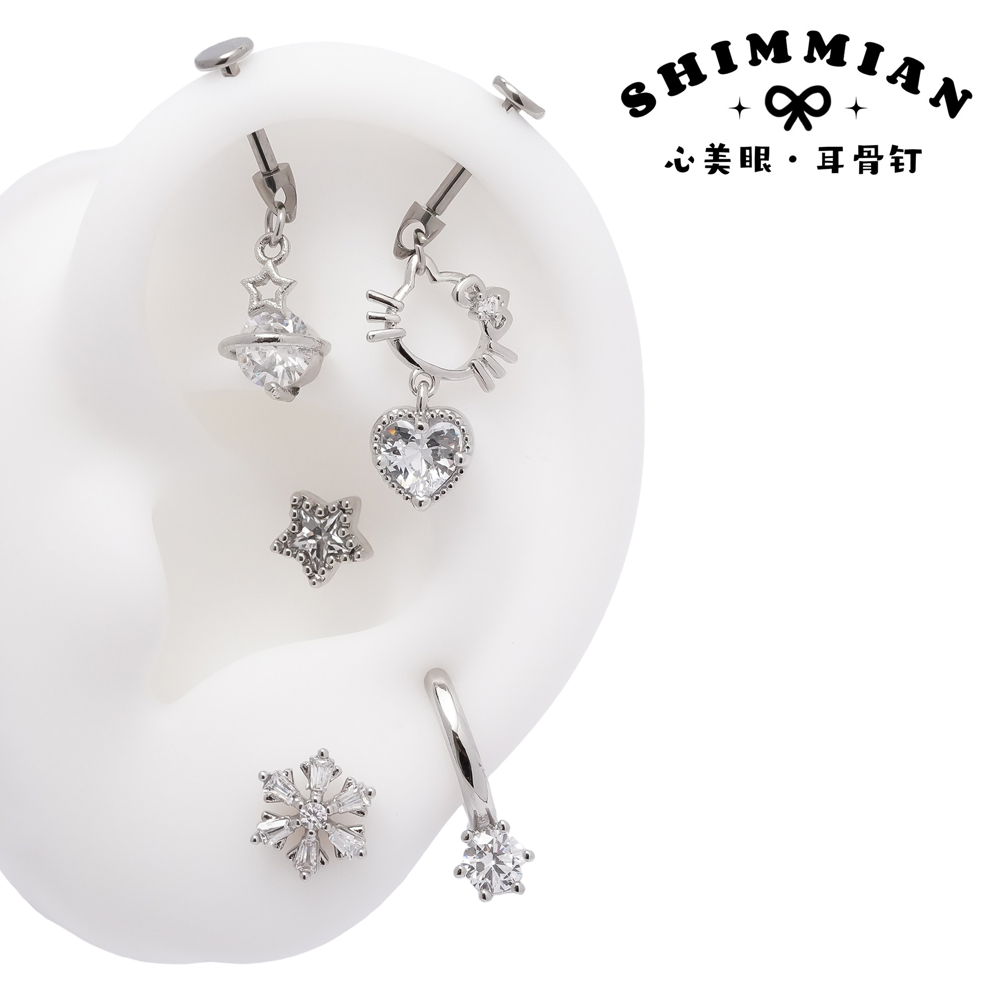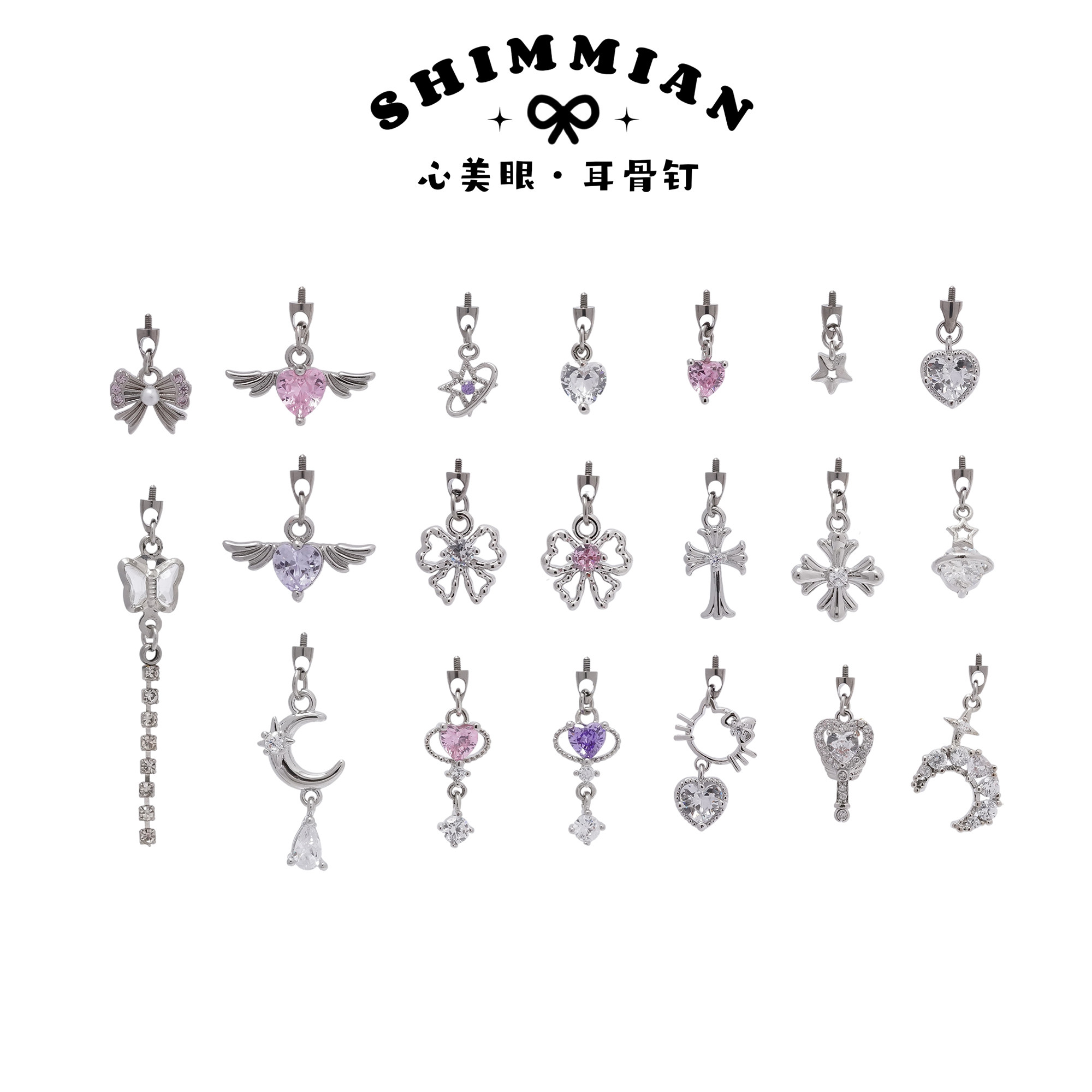 📚 心美眼钛合金F-136内螺纹耳骨钉恶魔免摘取饰品锆石修饰脸型吊坠